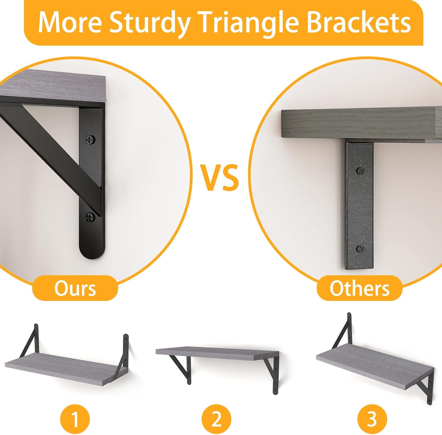 - 【Sturdy & Easy to Assemble】The Triangle shaped metal brackets are more sturdy, with a capacity of 40Lb. YGEOMER wood floating wall shelves for bathroom are super sturdy, very easy to install, all hardware and user manual was included.