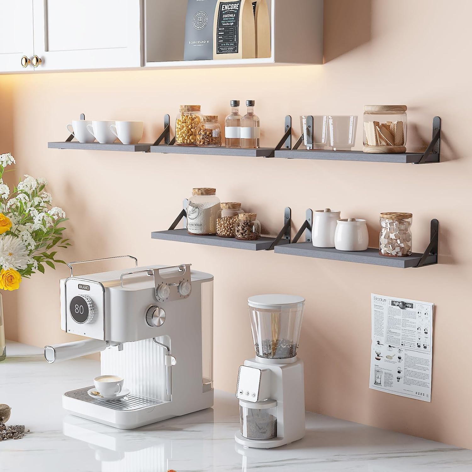 - 【Floating Shelves for Wall】This is a set of Six 16.5 inch long grey wall floating shelves, which is flexible and creative to create your own storage space. Our wall shelves are suit for all-type rooms because they process a simple & simple design.You can combine our floating wall shelves in any way you want.