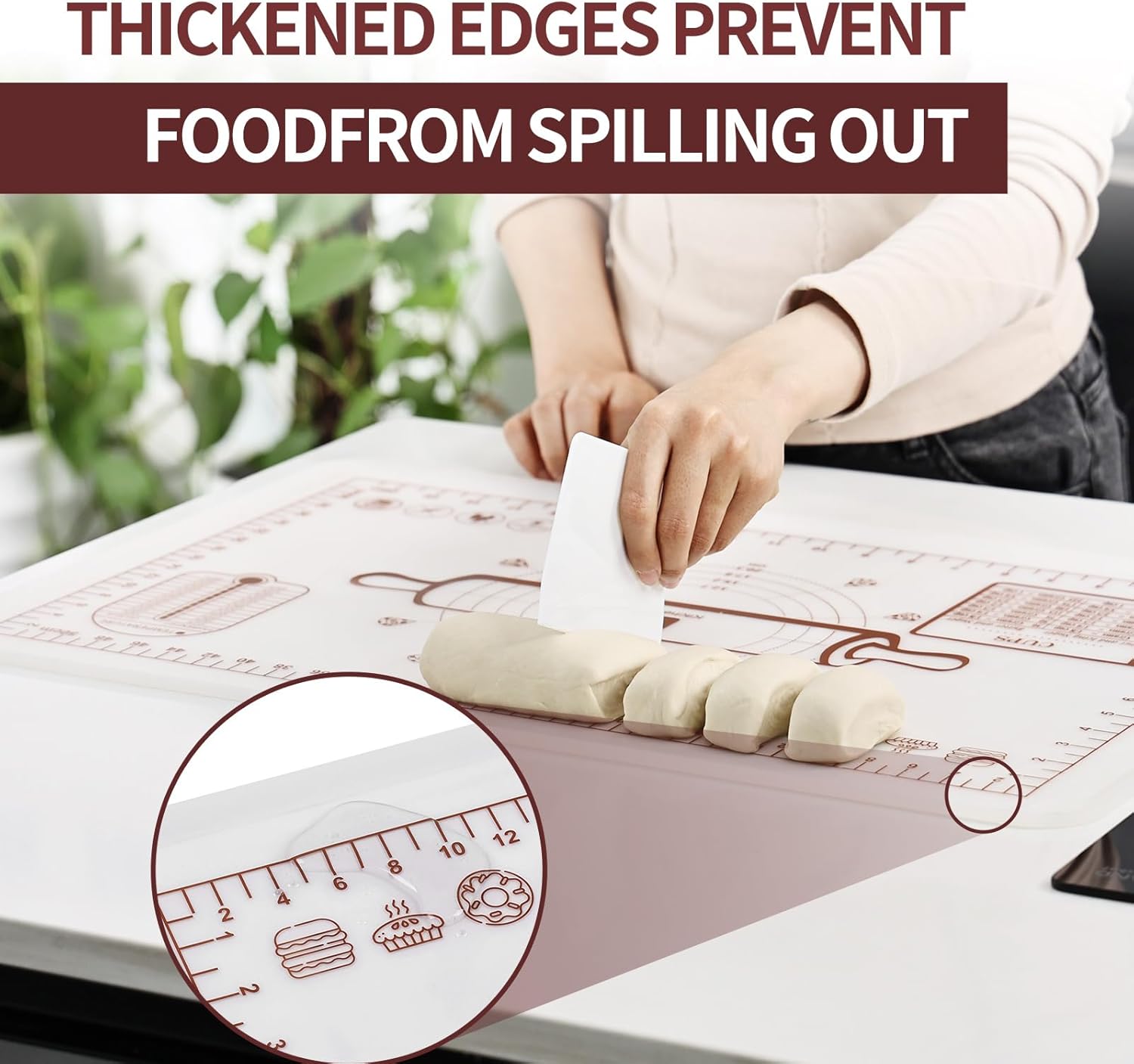 Silicone Baking Mat, Extra Thick Dough Rolling Pad with Measurements and Edge Heightening, Non-stick Food Grade Silicone Pastry Mat for Pastry, Bread, Cookies (Transparent, 16"L x 24"W)