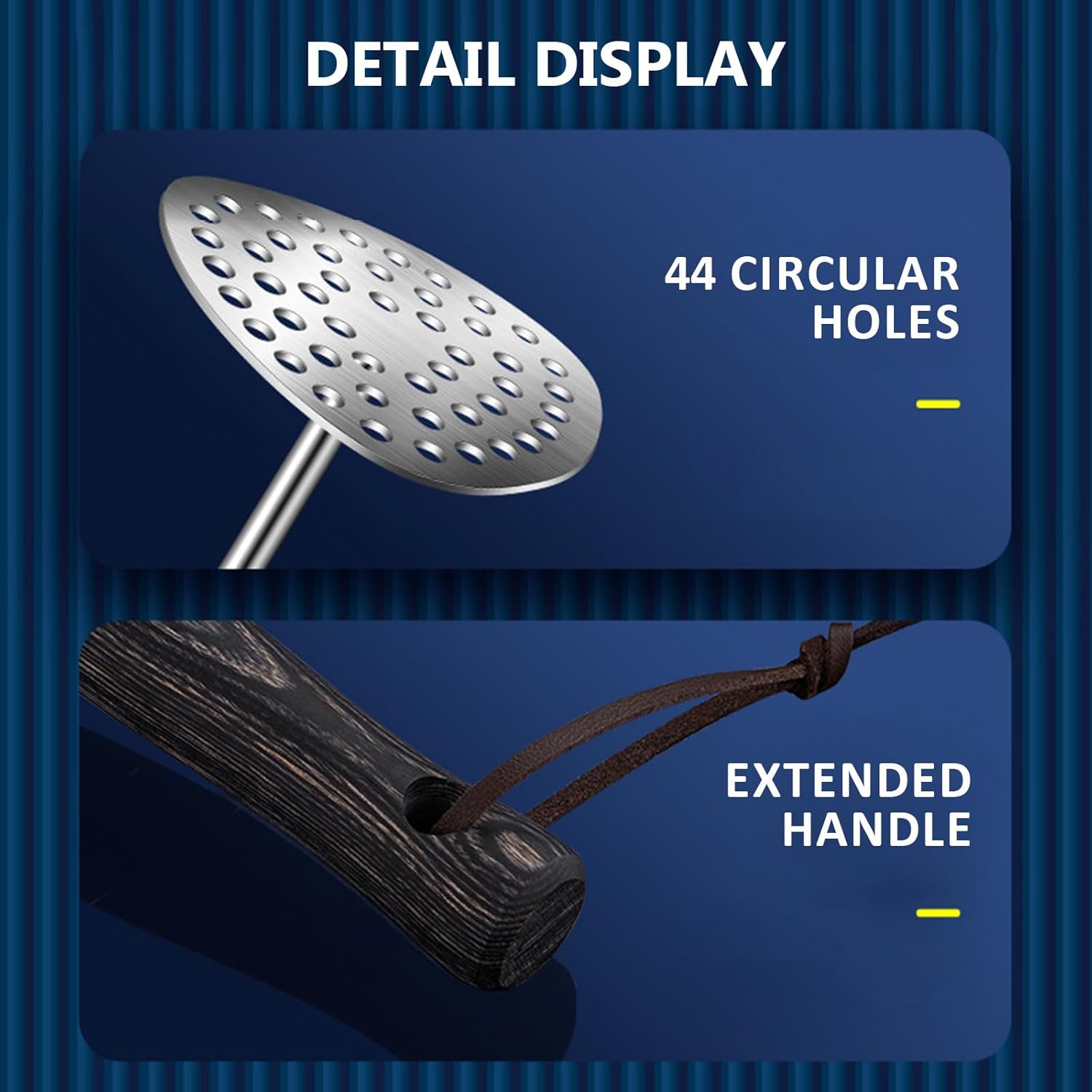 - ✅ Premium Stainless Steel & Comfortable Wood Handle - Heavy-duty stainless steel masher head resists rust and bends, while the ergonomic wooden handle provides a secure, non-slip grip. Perfect for smooth mashing without hand fatigue.