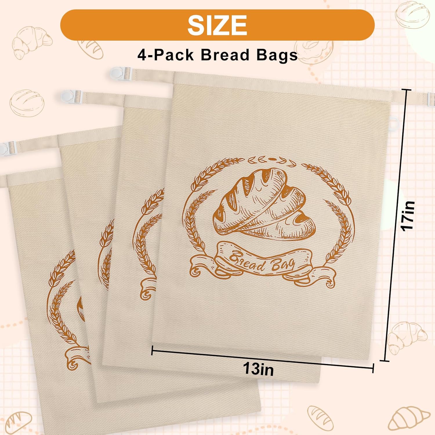 4 Pack Reusable Linen Bread Bags for Homemade,Organic Linen Bread Bag for Homemadesourdough 17 x3 inches Food Storage Cloth Bag,Keep Fresh and Upgrade Large Capacity Portable