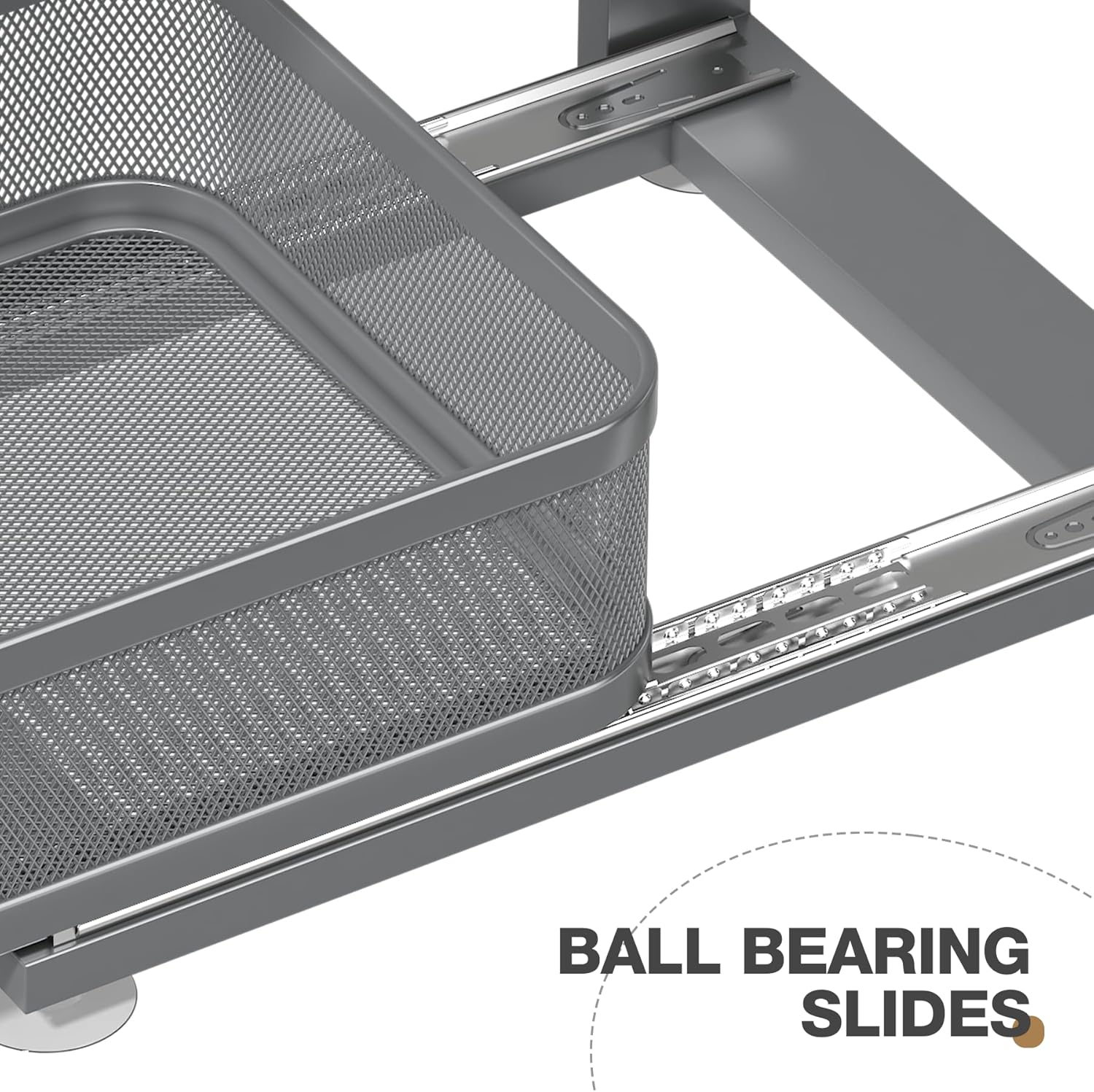 1 Pack 15.5IN-Depth Under Sink Organizer With Next-Gen Ball-Bearing Slides,2-Tier Precision Mesh Pull Out Cabinet Storage for Bathroom&Kitchen,Height Adjustable Drawers Shelf,Anti-rust-Grey