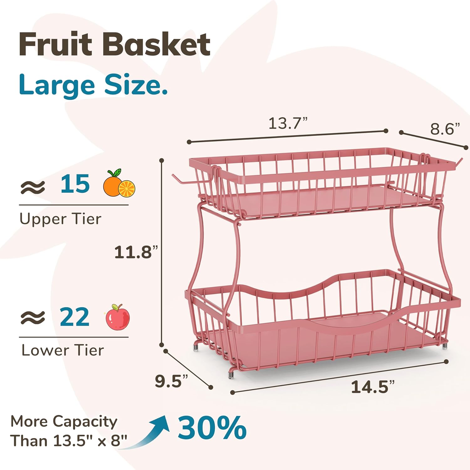 - Elevated Base: Raised base with non-slip pads keeps the fruit basket stable and protects kitchen countertops