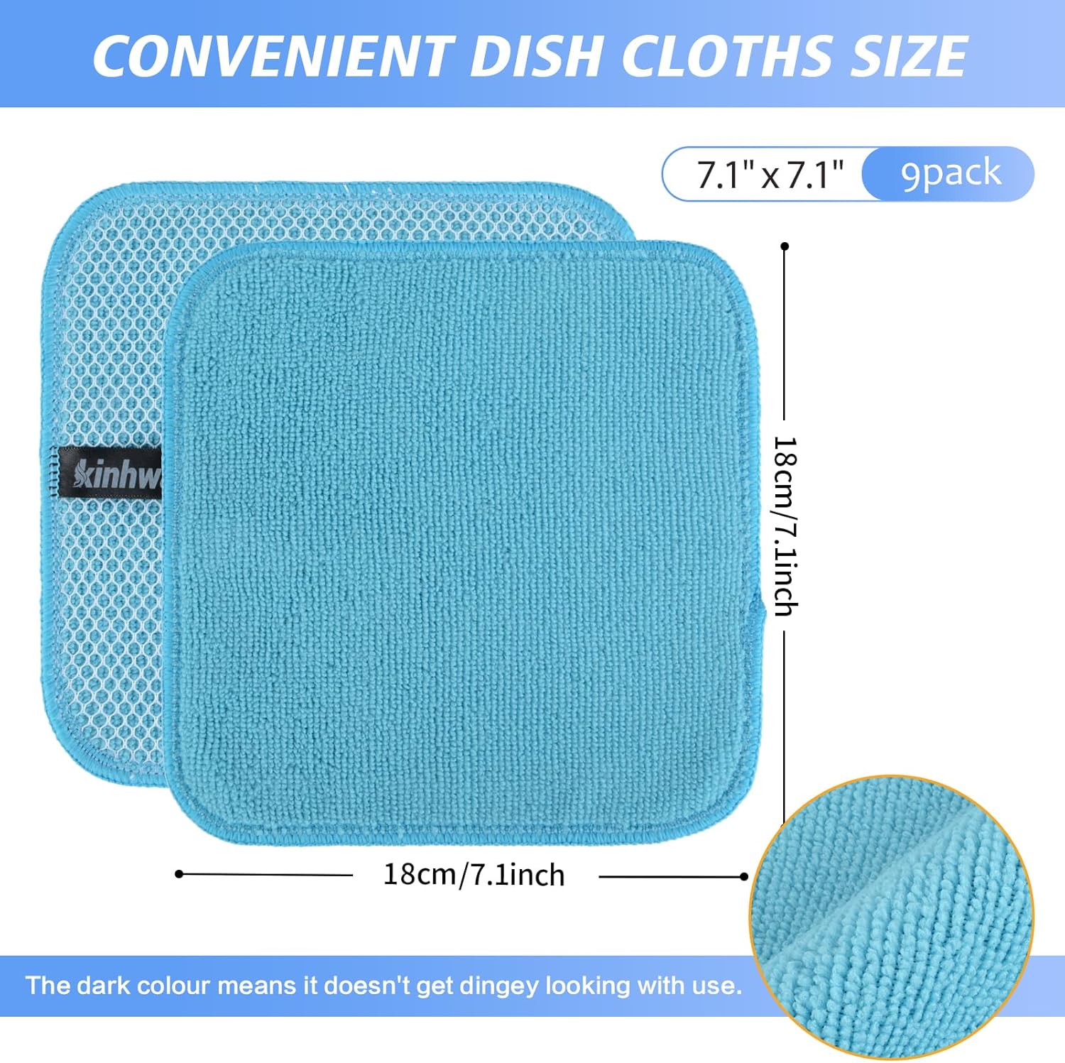 KinHwa Kitchen Washcloths for Dishes Absorbent Microfiber Dish Cloths Quick Dry Dish Rags with Poly Scour Scrub Side Ideal for Kitchen Cleaning (Mixing Colors #3, 7inchx7inch 9 Pack)