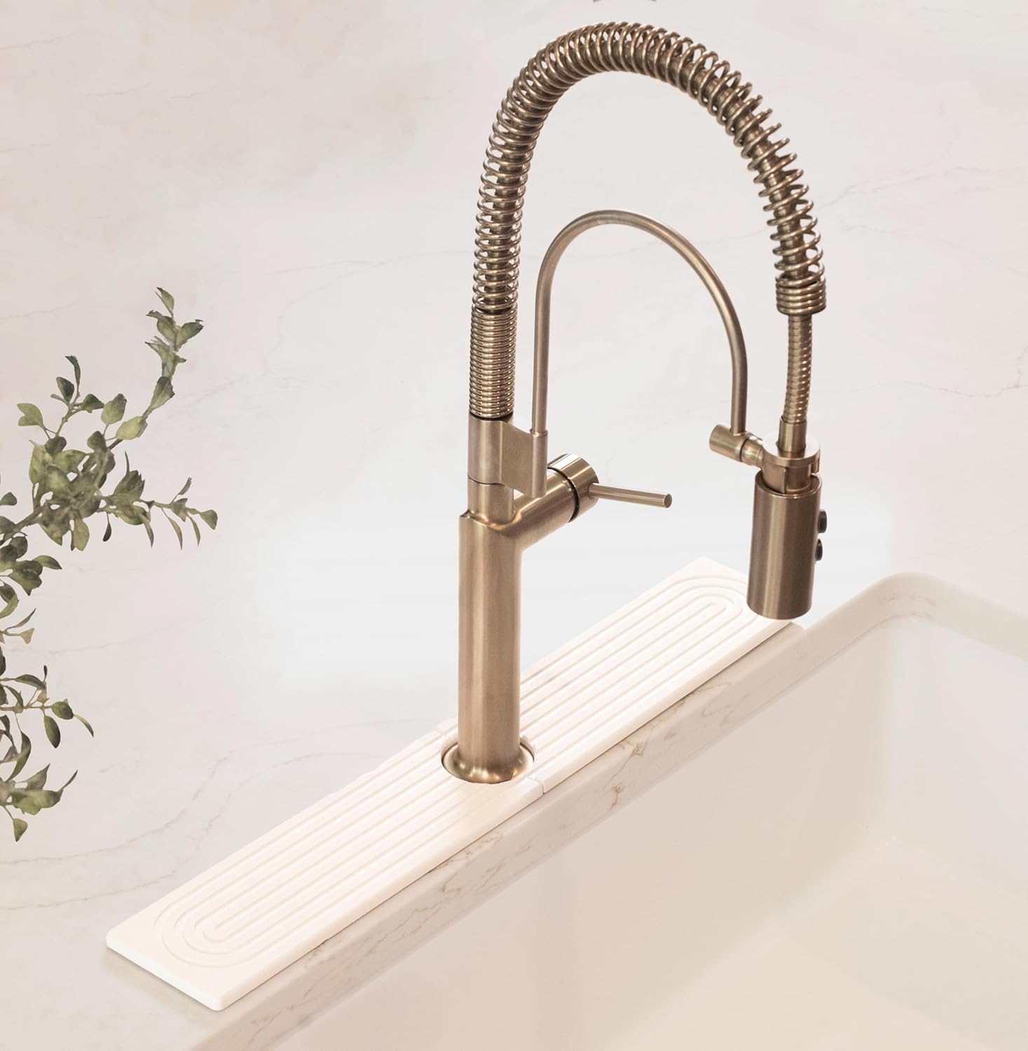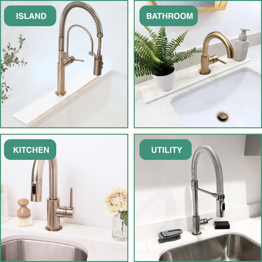 - ✅ Fits Perfectly Around Faucets: Designed to sit snugly around most kitchen faucets, our kitchen faucet mat is the perfect behind sink splash guard to prevent water from pooling on your counter, catching every drop before it hits your countertop. Whether a farmhouse sink, stainless steel basin, or modern faucet, the LuxeHaus dish soap tray and stone sink tray adds targeted splash protection exactly where you need it—without clutter or bulk.