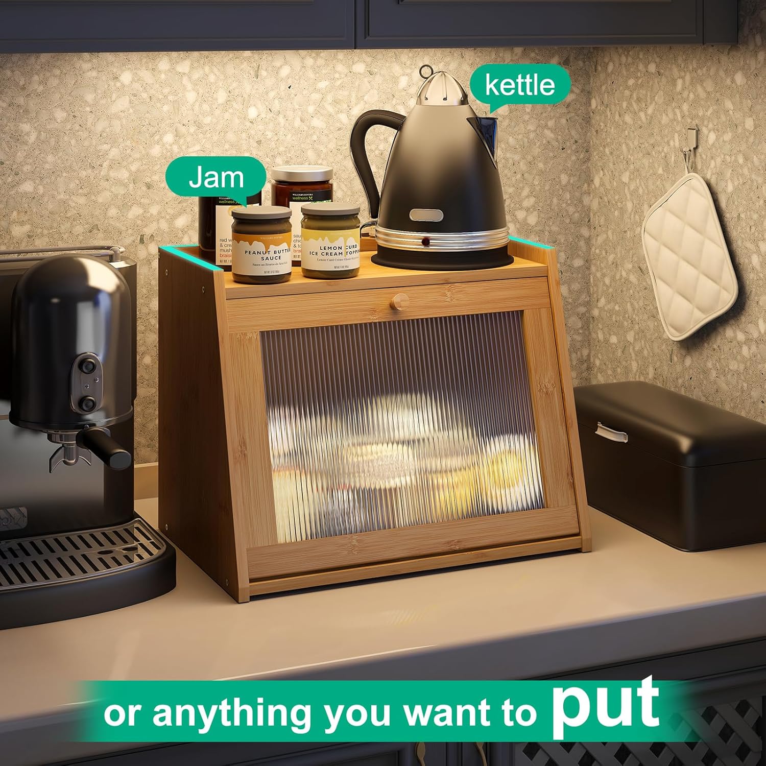 - Flat Top Design: Super load-bearing capacity, any kitchen items you want can be placed on the bread box