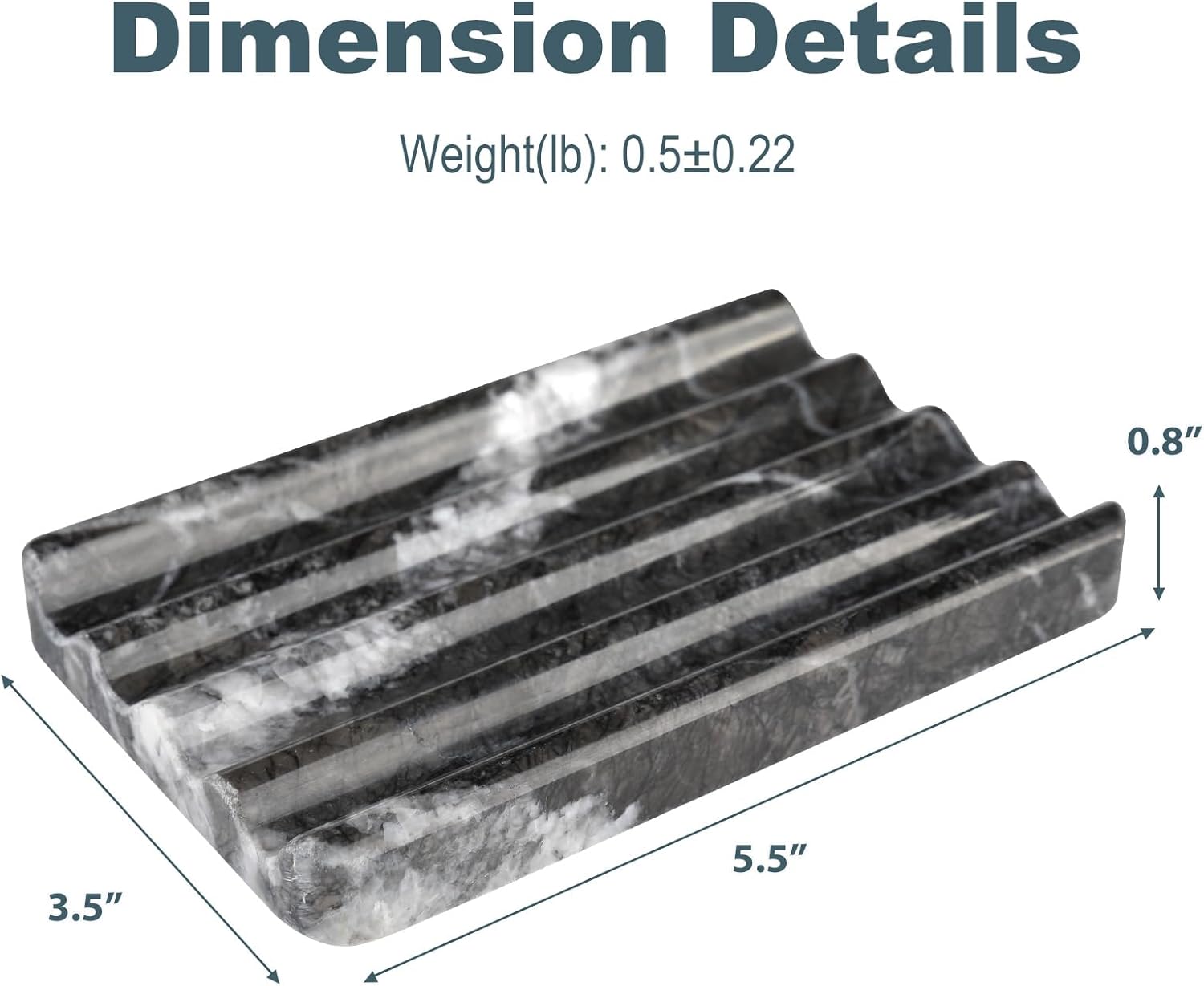 - EXCELLENT DESIGN: Square bar soap dish for holding soap, designed in a wave shape with raised edges. This soap dish drains the soap effectively, preventing it from slipping out and keeps soap clean and dry. The heavy marble soap holder comes with 4 non-slip pads, the pads are under the box for better water leakage.