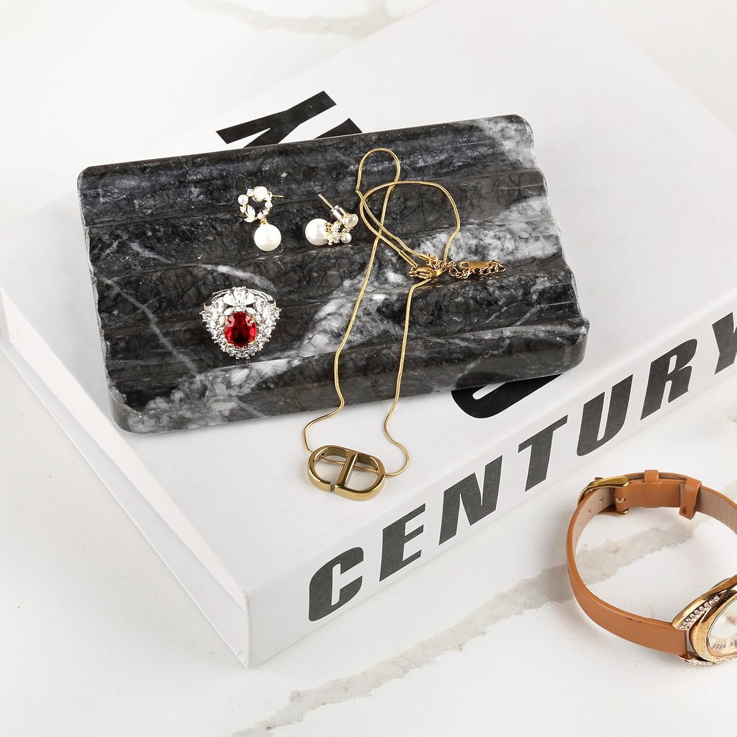 Marble Soap Dish, Bar Soap Holder Shower, Black Soaps Bathroom Saver with Water Ripple Design, Easy Cleaning Natural Stone Sponge Holder for Kitchen Sink, Executive Jewelry Ring Tray