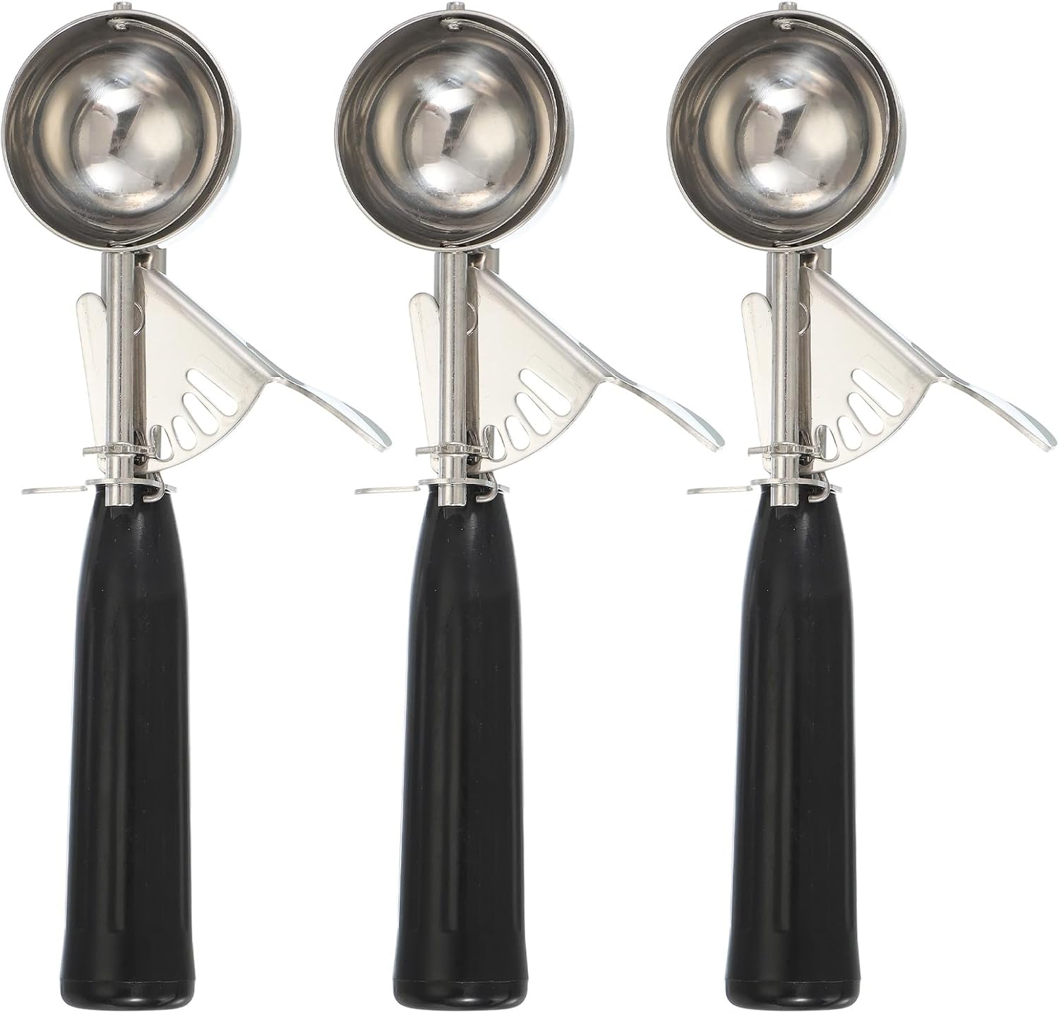 uxcell 3 Pcs Cookie Scoops, Ice Cream Scoop with Trigger for Baking Cookie Dough Rice Pudding Kitchen Gadget, Black