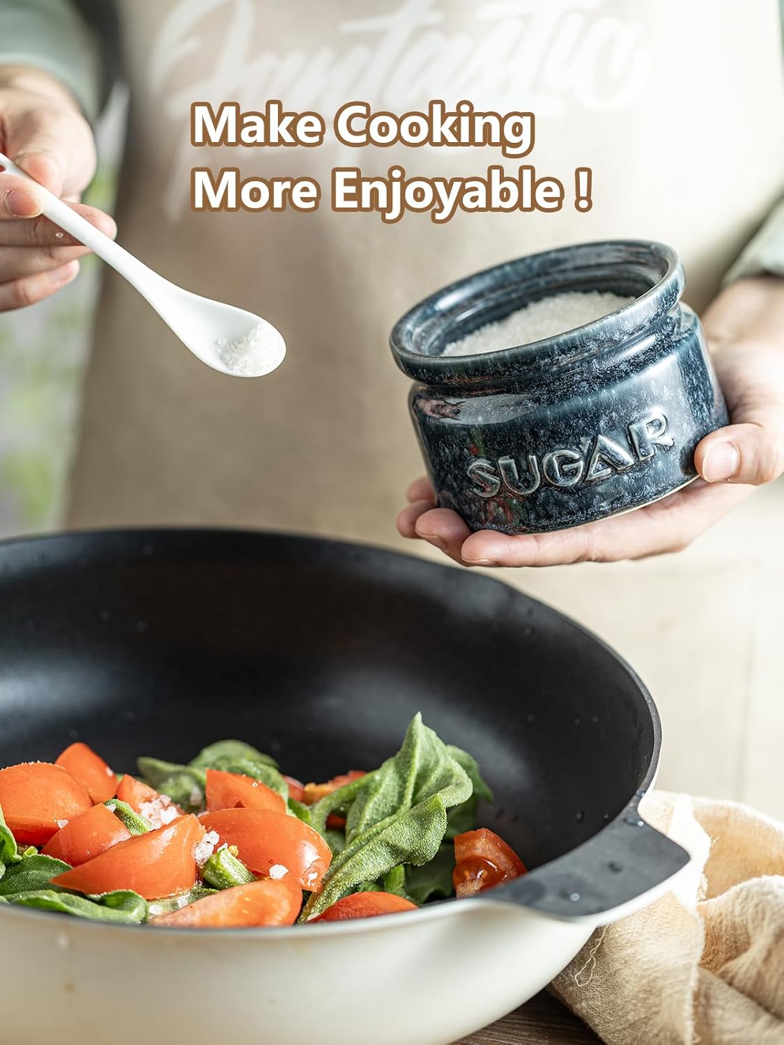 - PRO-GRADE CERAMIC: Our sugar container is made of sturdy and long-lasting ceramic, lead-free, cadmium-free, and scratch-resistant. It is easy to clean, the ceramic glaze is smooth and not easy to stick, and it is safe in the dishwasher and refrigerator.