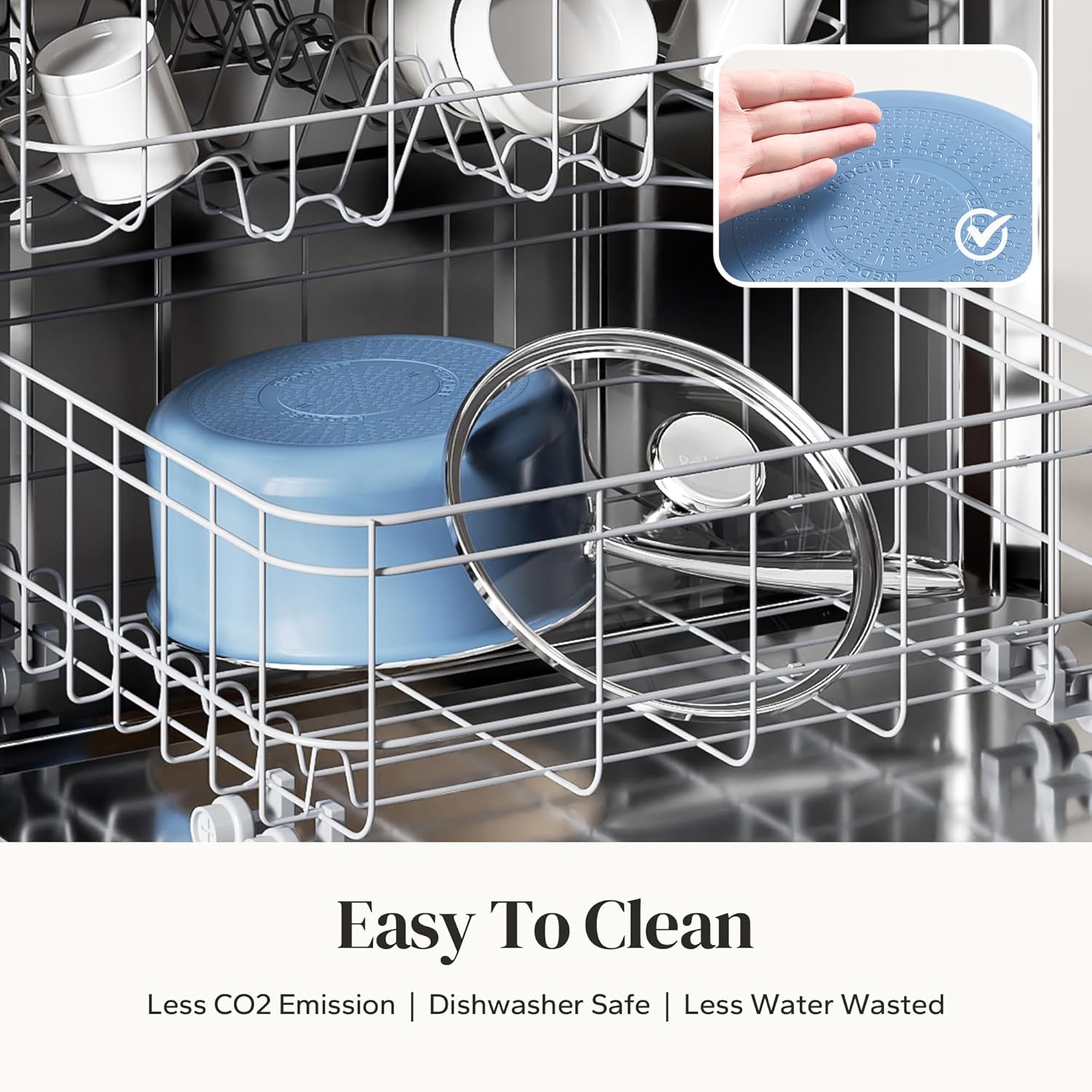 - CERAMIC NONSTICK COATING (PFAS/PFOA-FREE):Healthy cooking with minimal oil. Scratch-resistant ceramic surface ensures easy cleanup and long-lasting performance. Enjoy worry-free cooking with ceramic pot's toxin-free coating