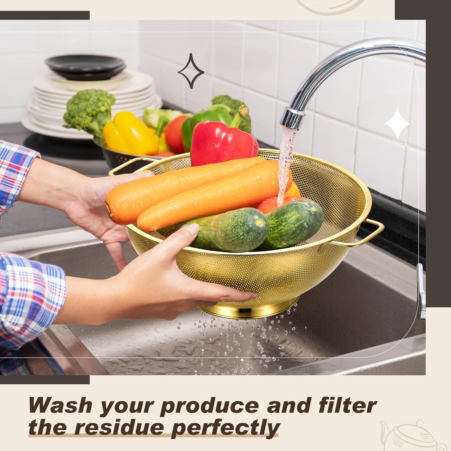 - Gold Kitchen Accessories: this package comes with 3 pieces of gold fine mesh strainers and 1 piece of 7 quart gold colander, this combination is nice to meet your daily usage and replacement needs, you can also share them with others