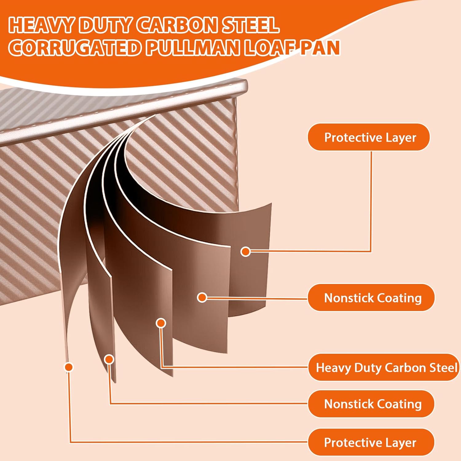- Non-Stick Pullman Loaf Pan with Lid 13x4 Inch - 2.2lb Carbon Steel Bread Baking Pan with 4 Vent Holes, Heavy Duty Sourdough Loaf Pan with Cover for Homemade Sandwich Bread