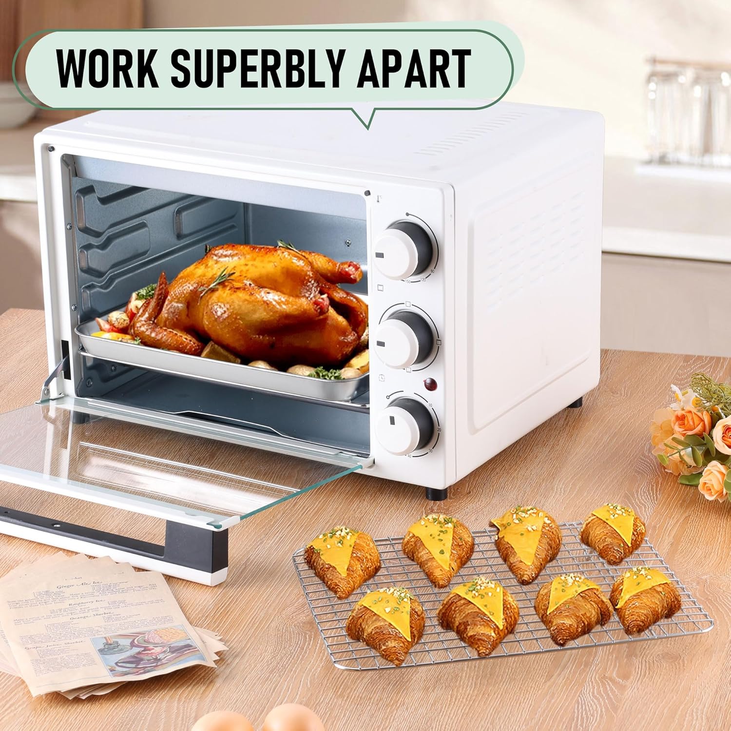 - Exquisite crafted, grid rack perfectly fits in the baking pan and work well on most regular oven or toaster oven, have excellent heat conductivity for evenly baking, oven safe up to 450Β°F, smooth mirror finished surface to to minimize the risk of food sticking, offer quick food release and easy cleaning, dishwasher safe to save your labor and time