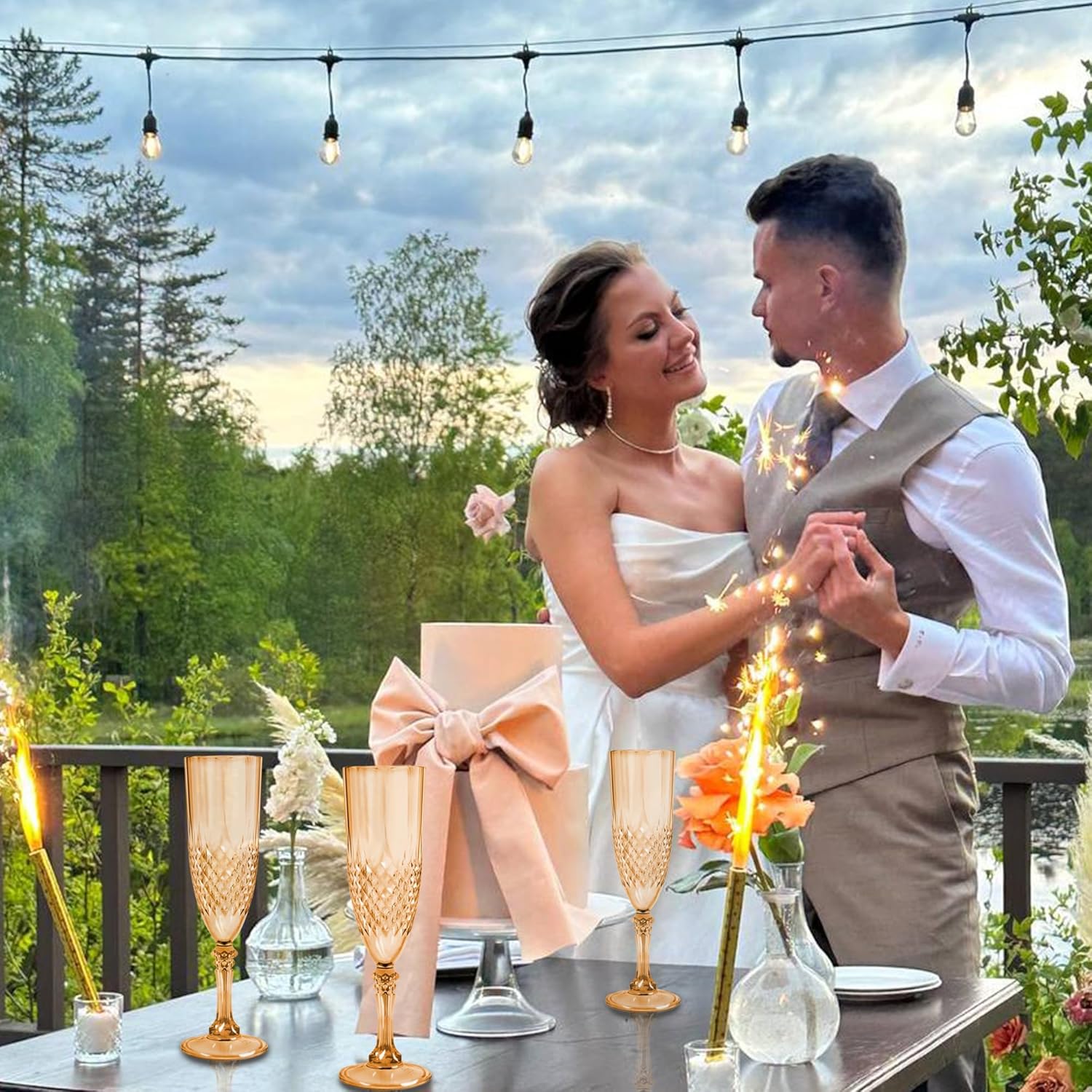- Charming Set: Champagne flutes set include 48 retro-style gold champagne plastic wine glasses, providing ample quantity to meet your daily use and replacement needs. A suitable champagne cup is the icing on the cake. Plastic wine glasses not only carry the wine, but also carries the laughter and blessings