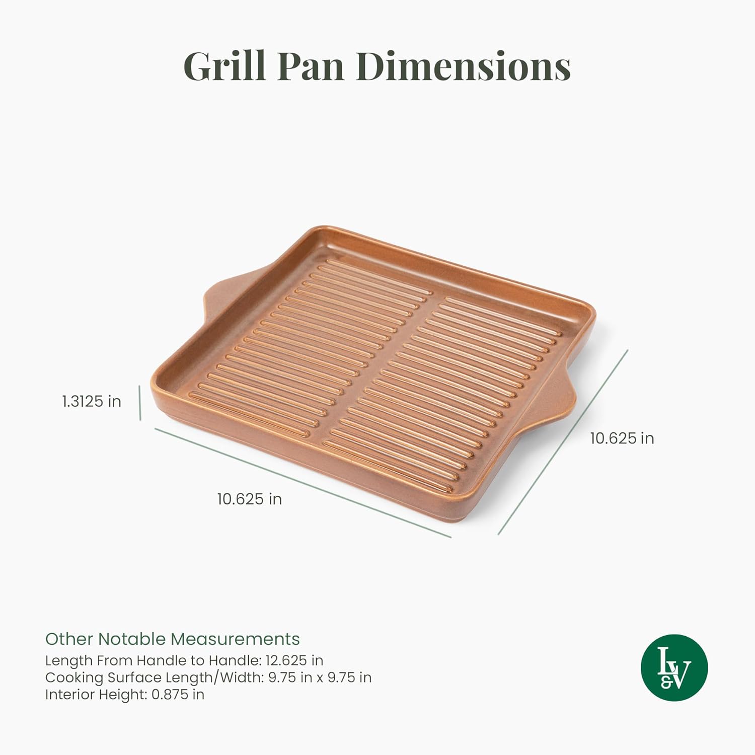 - Versatile Design: This 12.6 in x 10.6 in square ceramic grill pan is suitable for indoor/outdoor use on gas and electric stovetops or grills. Perfect for a wide range of recipes and cooking techniques such as searing, sautéing, baking, and broiling. Not suitable for induction stovetops or stovetops with tempered glass.