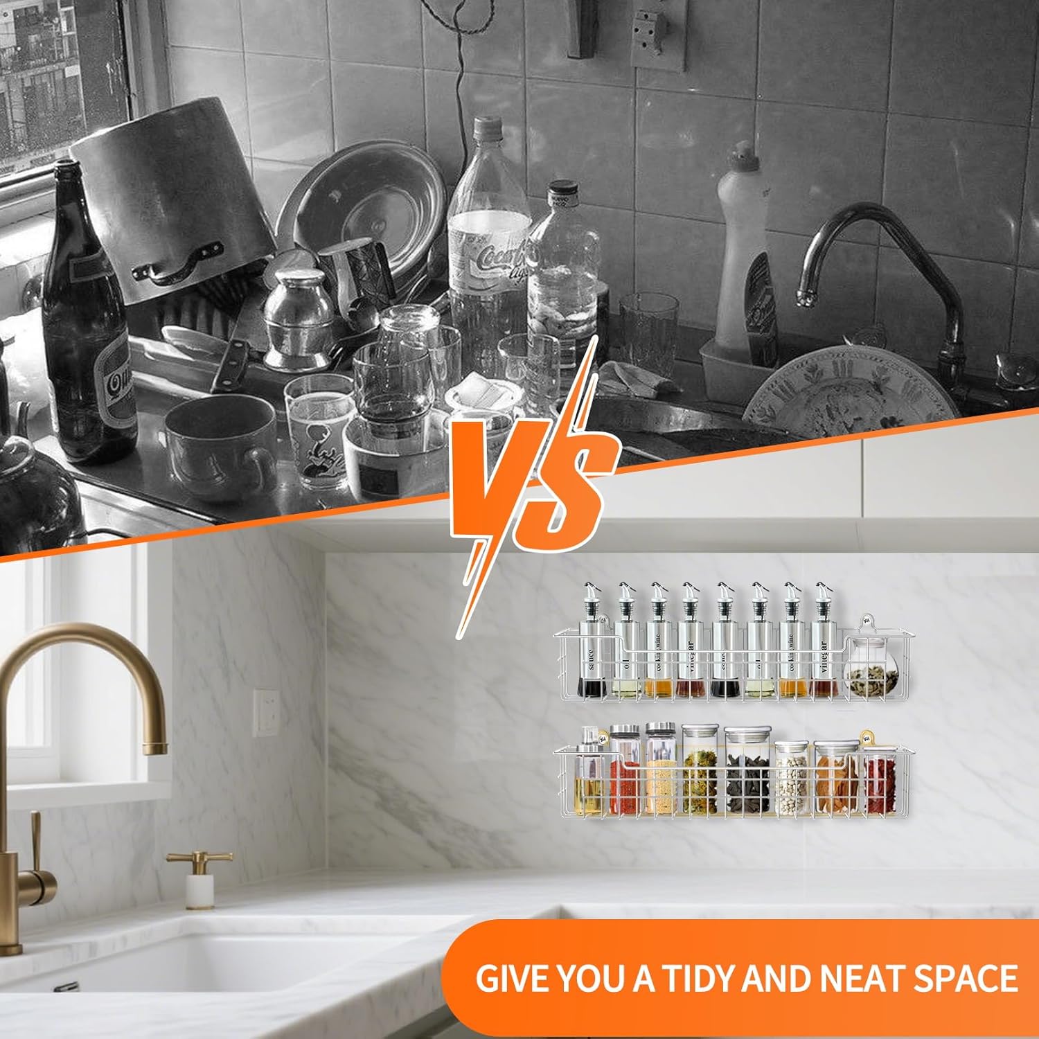 - Durable 2.0mm Metal Spice Rack: Heavy-duty steel construction with reinforced mesh design for superior strength. Supports heavy loads without bending or breaking