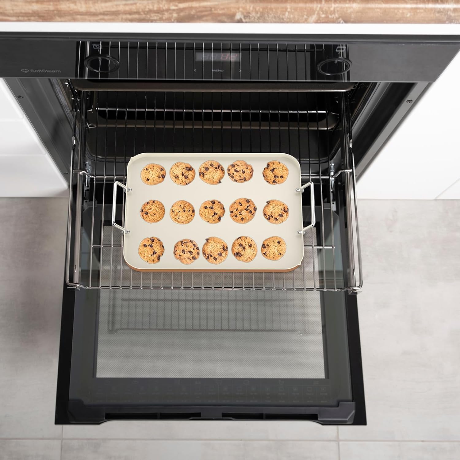 - ✅The surface of the nonstick griddle pan is coated with a ceramic coating. The ceramic coating is free of PFOA, PTFE, lead, cadmium, or other toxic metals, meeting food contact safety standards
