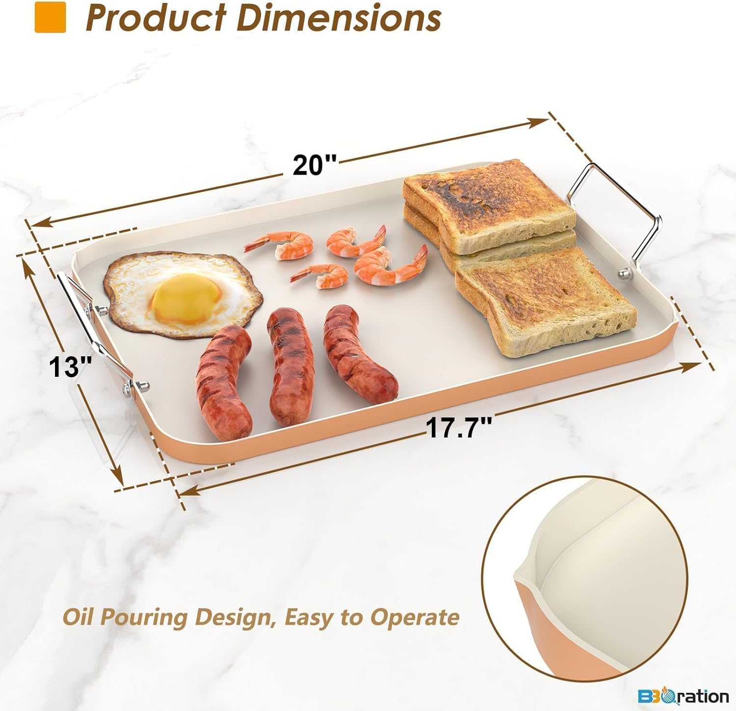 17.7" x 13" Burner Griddle Pan for Stove Top Oven, Stainless Steel Handles, Non Stick Ceramic Griddle Pan Griddle Skillet, PTFE Free PFOA Free