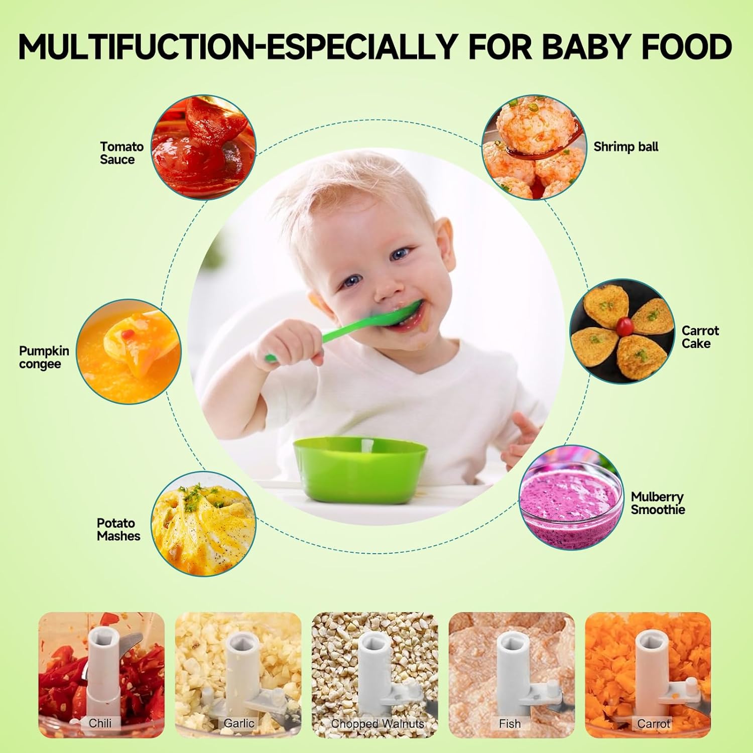 - Our pull food chopper meets most of your kitchen needs: The manual food processor is ideal for chopping onion, garlic, ginger, vegetables, fruit, nuts, herbs, meat, tomato, avocado and more for salsa, pesto, smoothie, guacamole, ground beef and more,Chopped Onions in seconds without crying, and chopping garlic without smell.