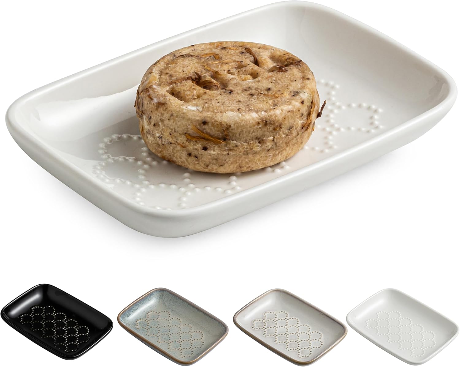 - PREMIUM CERAMIC SOAP DISH: Crafted from premium and enduring ceramic, this soap tray features waterproof, slip-resistant, and heat-resistant properties. Its unglazed bottom ensures the stability of the soap dish and prevents the dish from accidentally slipping into the sink, making it ideal for use on bathroom and kitchen countertops.