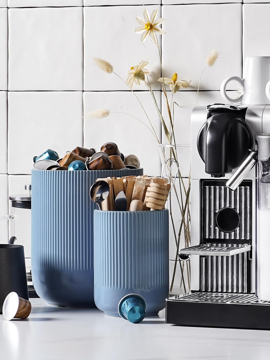 LE TAUCI Utensil Holder, 7.3"+5.4" Ceramic Kitchen Utensil Holder for Countertop, Large Cooking Utensil Crocks for Kitchen Counter, Modern Utensil Organizer for Spatula, Set of 2, Dusty Blue