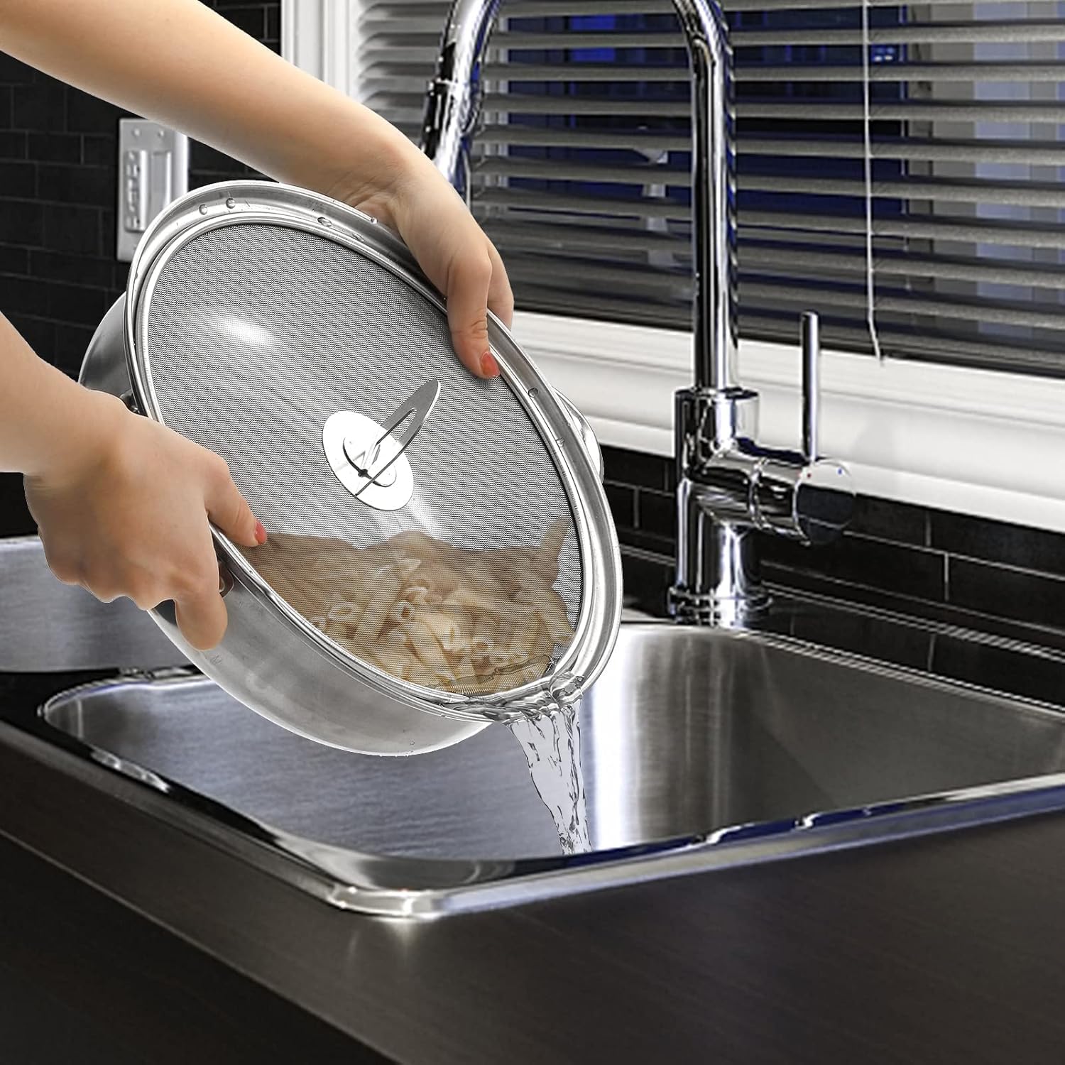 - 【HIGH QUALITY MATERIAL, DURABLE AND RELIABLE】Splash guard is made of perforated stainless steel with fine and delicate mesh. Even in the case of high temperature overheating, it always keeps the color as new, durable and will not fade or deform.