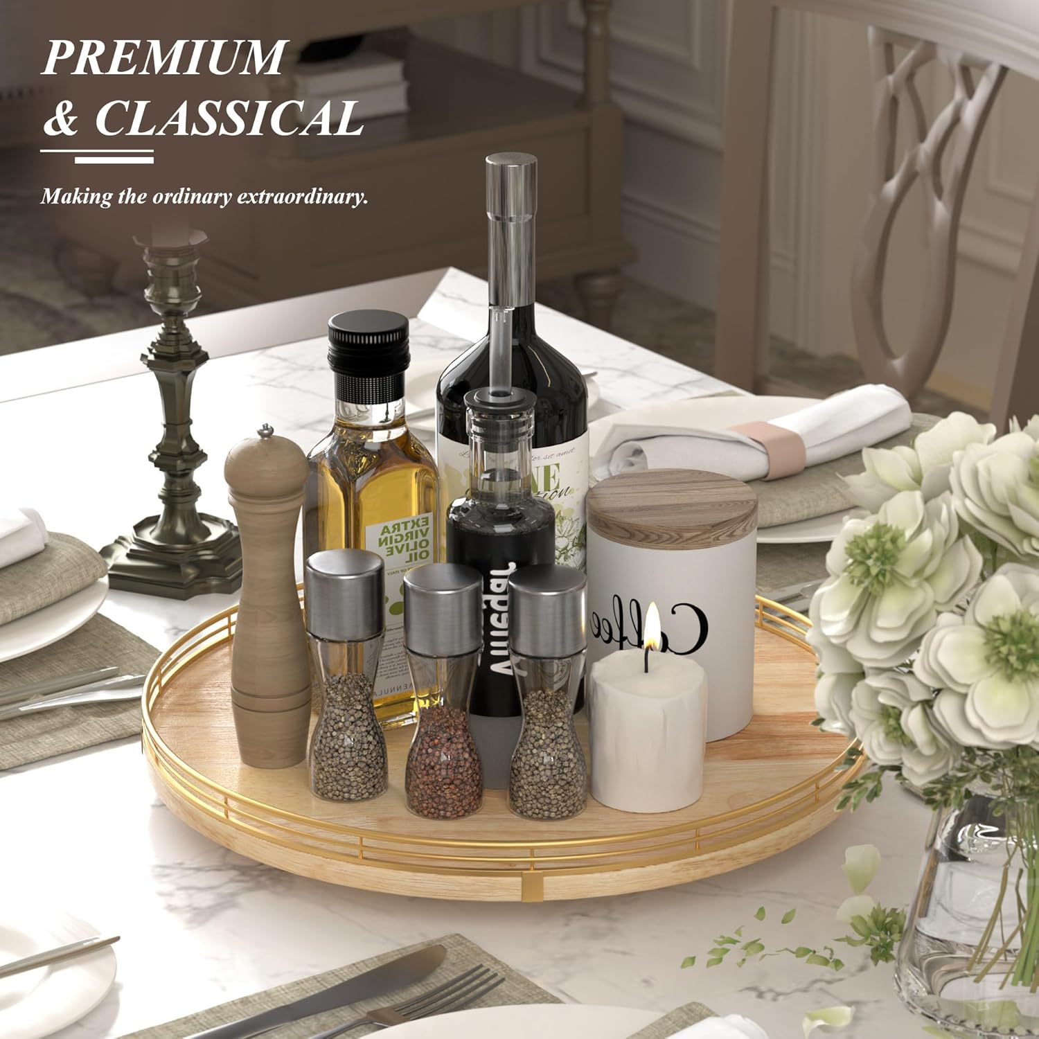 - Extra-Large 16” Surface – Perfect size for family-style dining, buffet spreads, charcuterie boards, condiments, or tabletop organization in kitchens, dining rooms, or coffee tables.