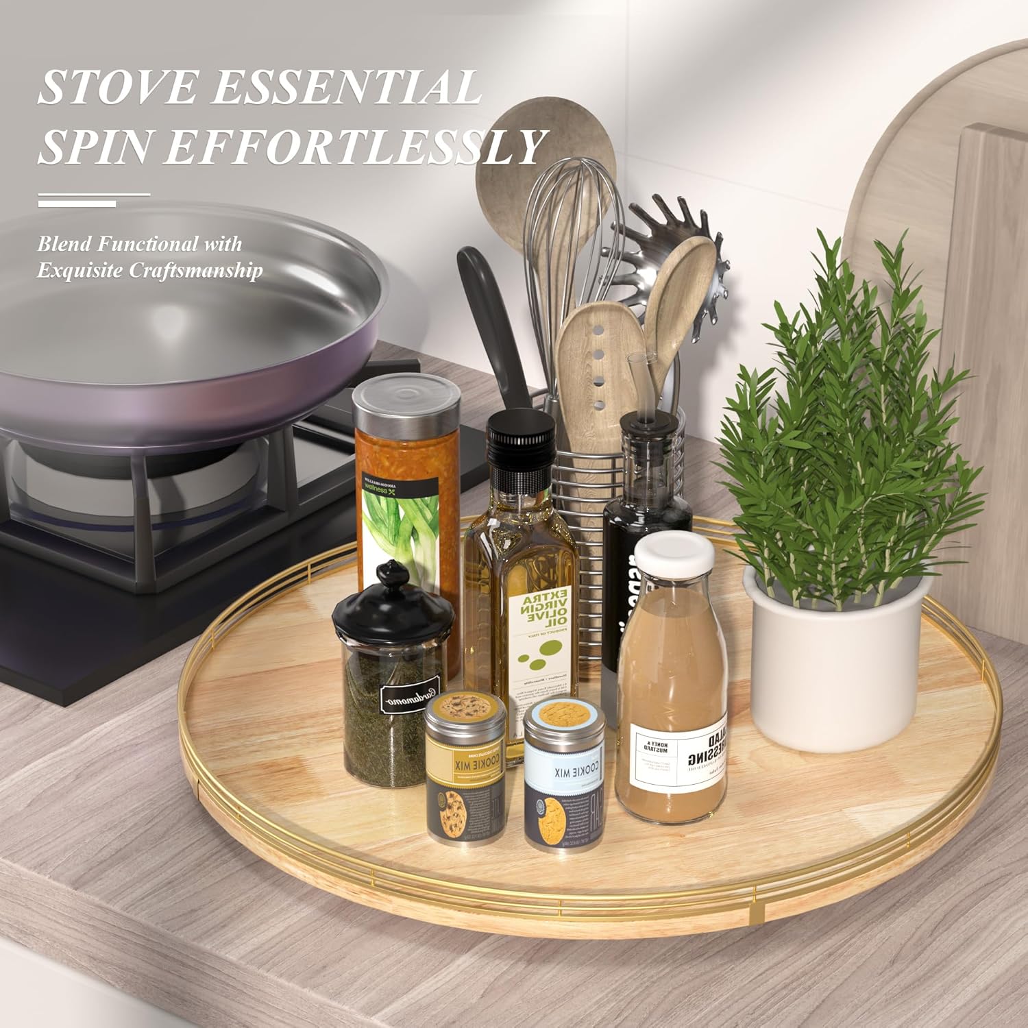 - [Versatile & Multi-Purpose] Not just for kitchens—this wooden turntable also shines as a makeup organizer, coffee bar tray, charcuterie board base, or elegant home decor accent.