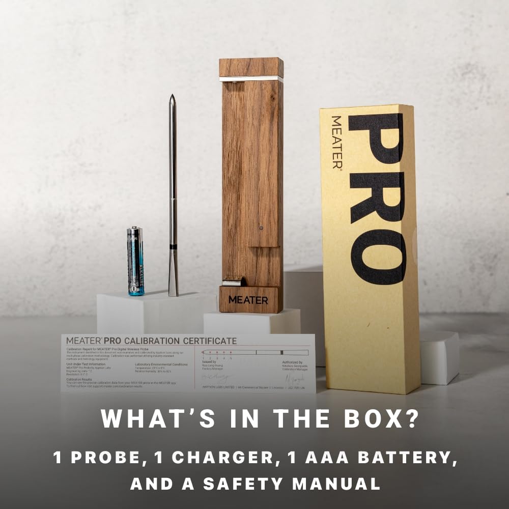 - 100% Wireless: Say goodbye to tangled wires and limited mobility. The MEATER Pro is completely wireless, allowing you to monitor your cooking via Bluetooth Coded PHY long range. Enjoy hassle-free cooking whether you're in the kitchen, backyard, or patio. Connect to the free MEATER app, available on iOS and Android.