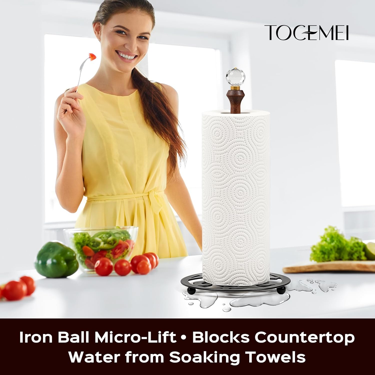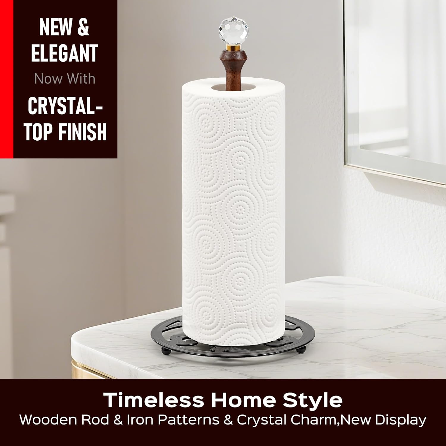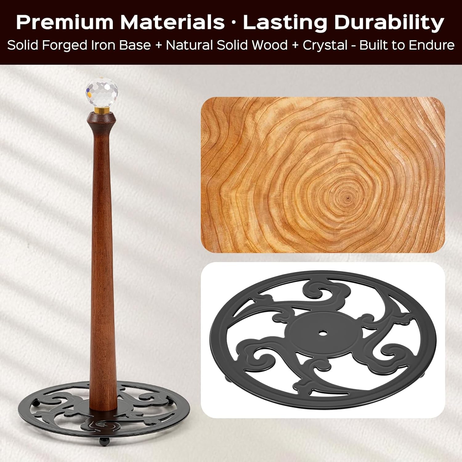 - Premium Materials for Lasting Beauty:Crafted for paper towel holder wood with solid wood rod, iron base for freestanding paper towel holders, & crystal finia—for durability. Handpicked wood brings warmth with unique grain;iron resists wear, crystal shines