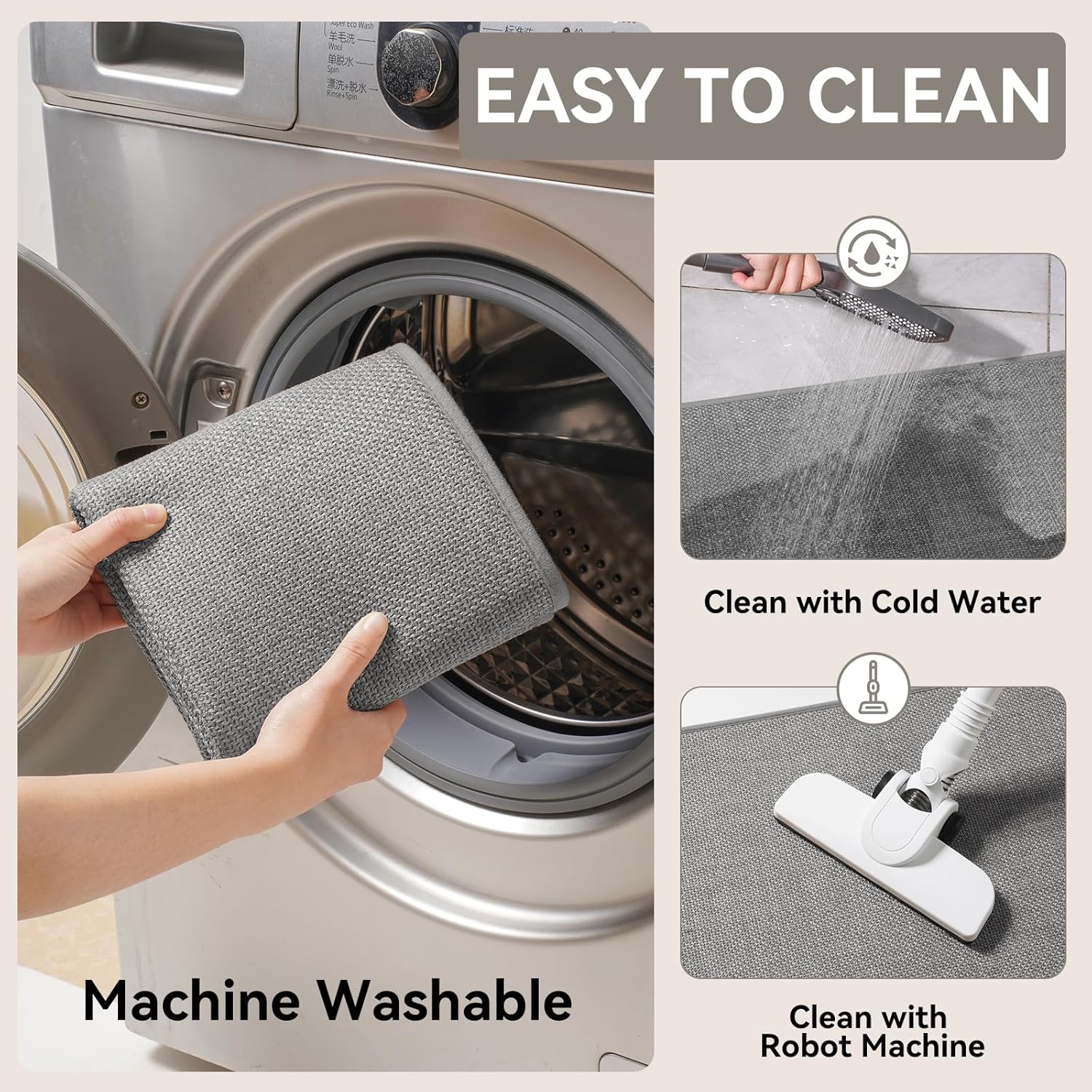 • Ultra Durable & Easy To Clean - Washable kitchen rugs have strong, well-made edges to ensure that they retain their shape over time and will not disintegrate and compress. Kitchen rugs are easy to clean and maintain, you can wash them with a vacuum cleaner or washing machine. The color will not fade or crack after washing. PLEASE NOTE: Machine wash cold with a neutral detergent (no chlorine or bleach) and tumble dry low on low.