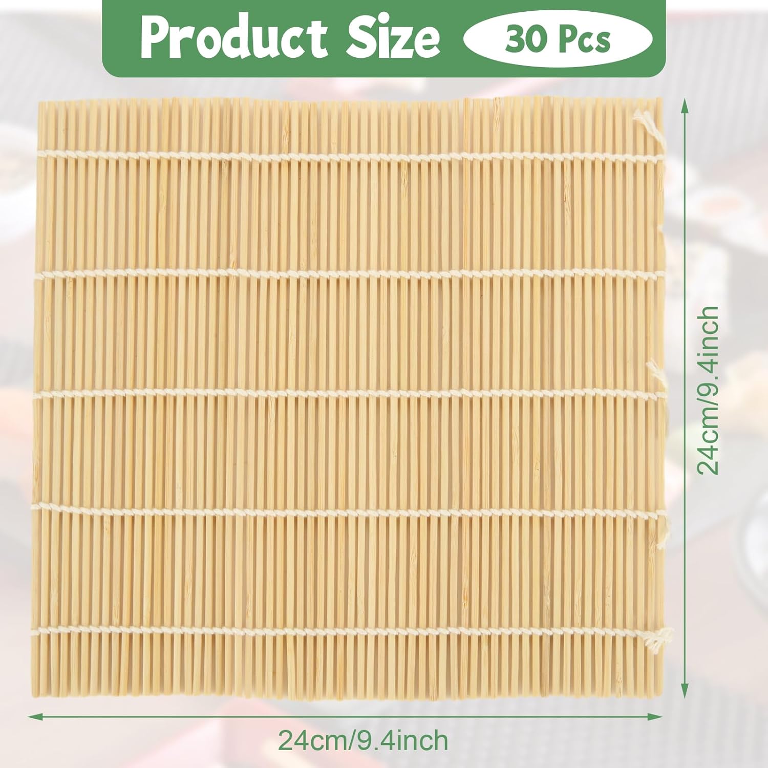 QTLCOHD 30 Pcs Bamboo Sushi Rolling Mat 9.5 x 9.5 Inch Bamboo Mats for Sushi Making Nonstick Kimbap Roller Bulk for Home Sushi Roll Party