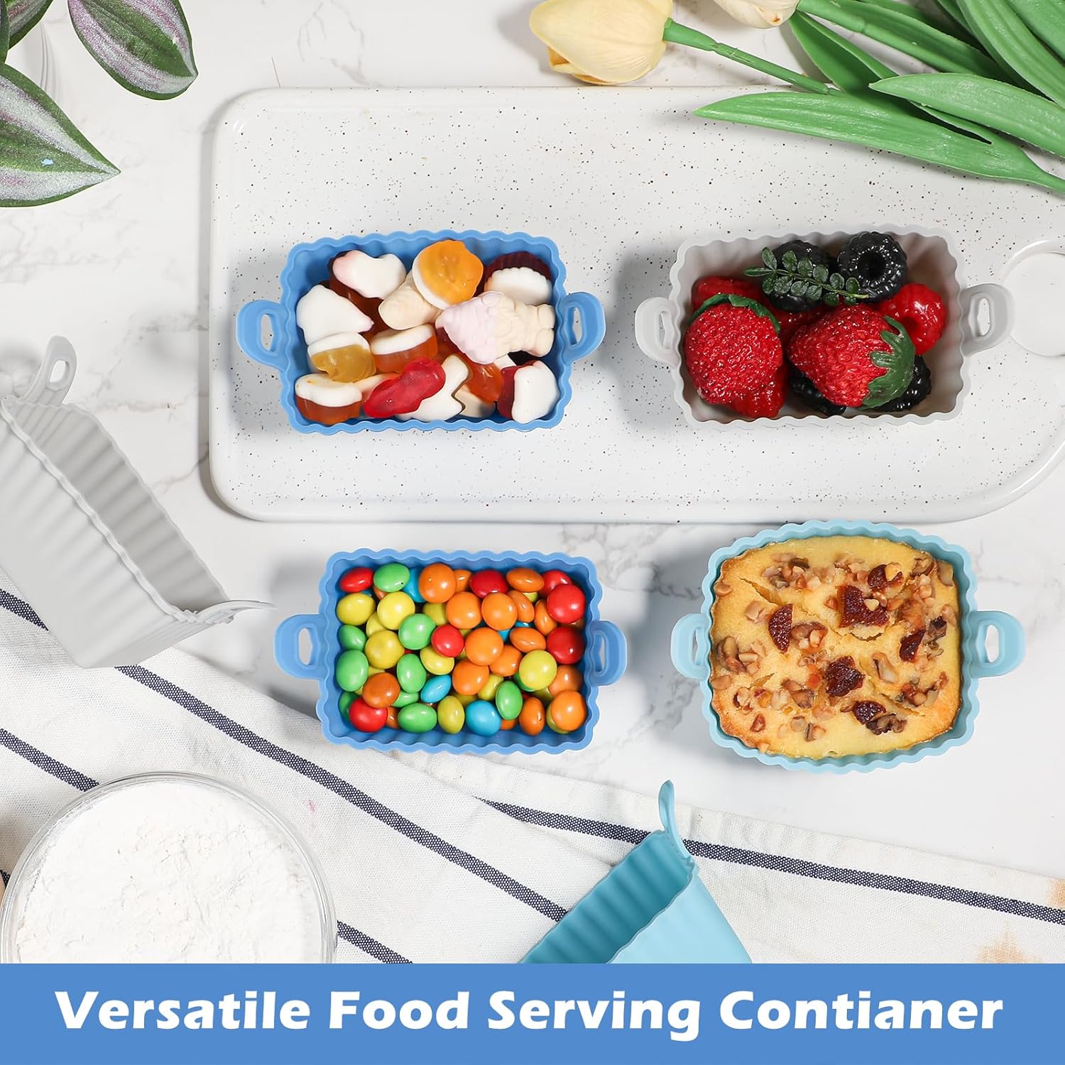 - 【Multifunctional Cupcake Liners】 Ideal choice for making desserts, muffin cakes, souffle, creme brulee and pudding. They are also versatile for serving jams, snack, fruit, dipping sauces, butter and ice cream. Double Anti-slip handles help easy carry and transport