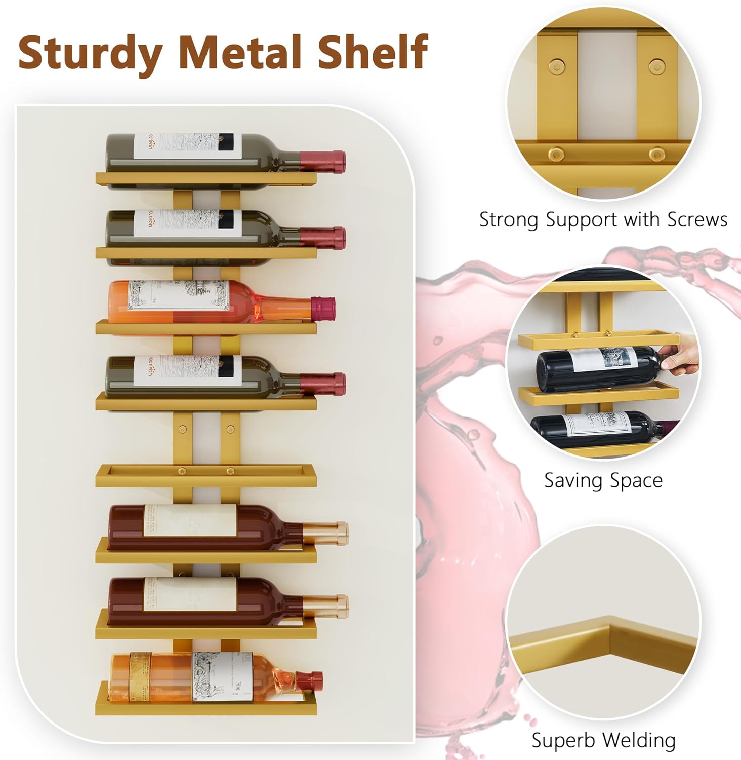 Hoctieon 2-Set 8 Tier Wall Mount Wine Rack (16 Tiers), Wall Racks for Wine Bottles Display and Storage, Hanging Bottle Organizer for Living Room, Dining Room, Wine Cellar, Bar, Gold