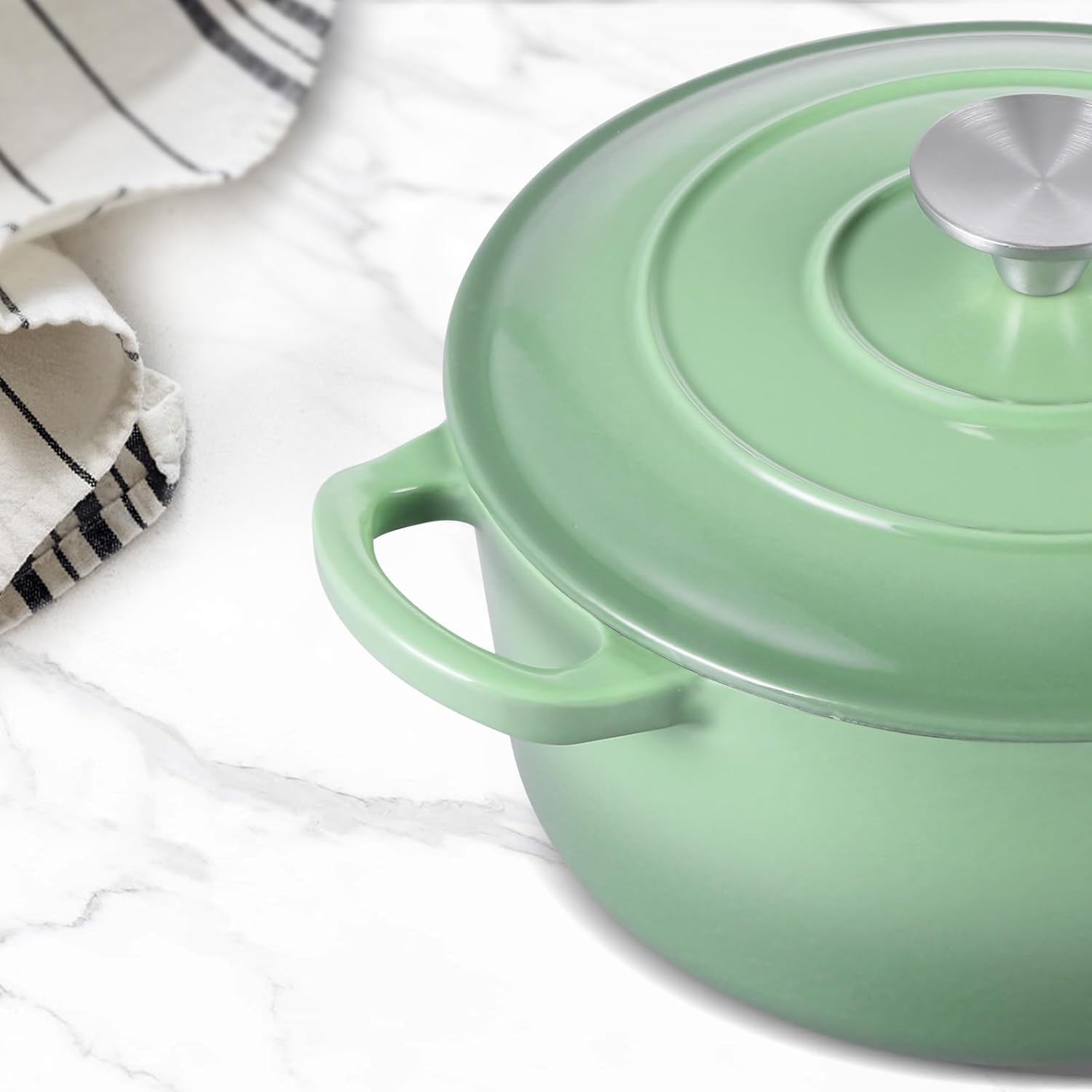 3QT Dutch Oven Pot with Lid, Leonyo 3 Quart Enameled Cast Iron Dutch Oven for Sourdough Bread Baking, Heavy Duty Cookware for Braising, Stews, Roasting, Pistachio Green