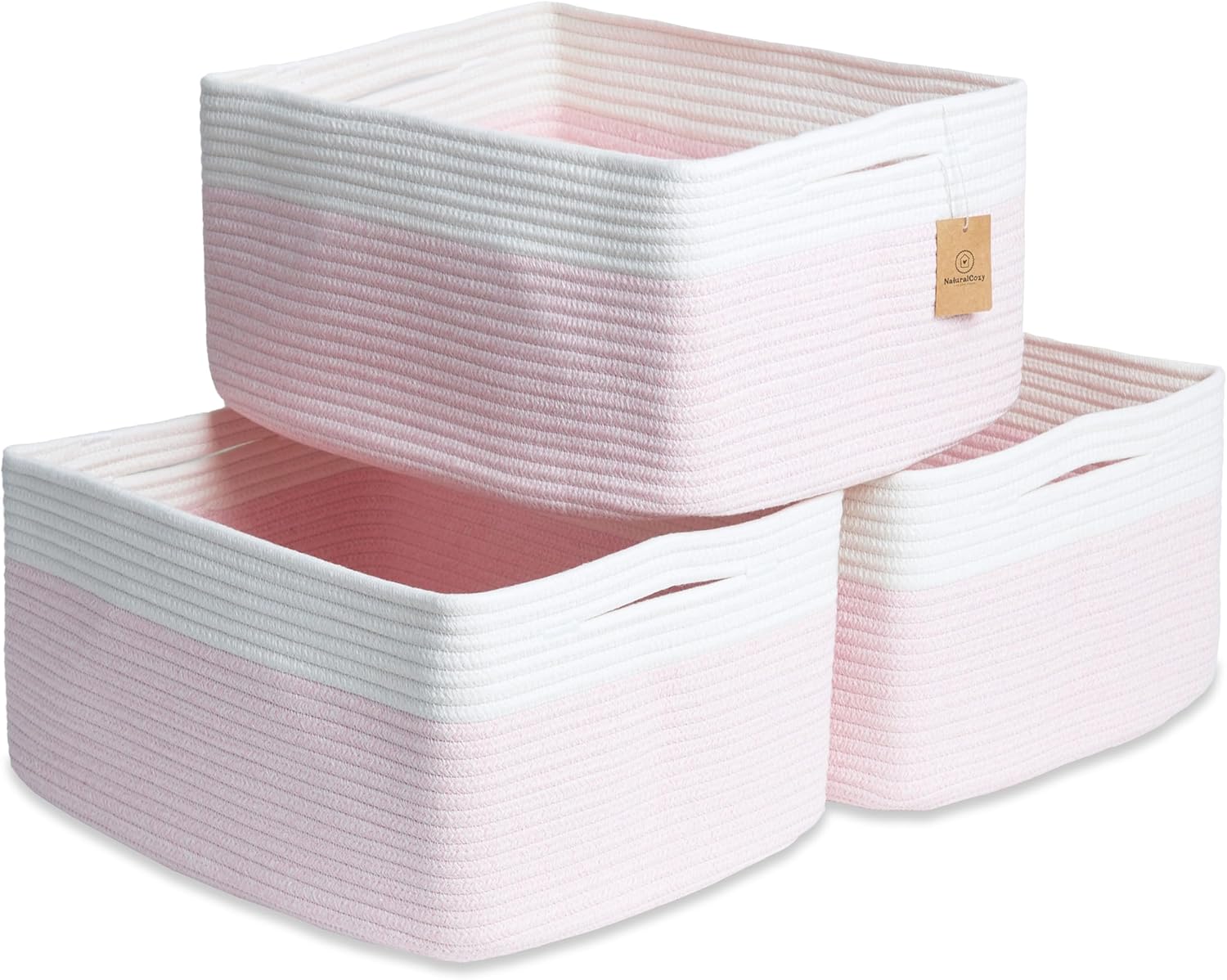 NaturalCozy Storage Baskets 16.8”x13”x7.6” Cotton Rope Woven Baskets for Organizing 3-Pack | Toy Storage Bins | Basket for Shelves, Laundry, Blanket, Clothes, Closet, Kitchen, Bathroom, Gifts