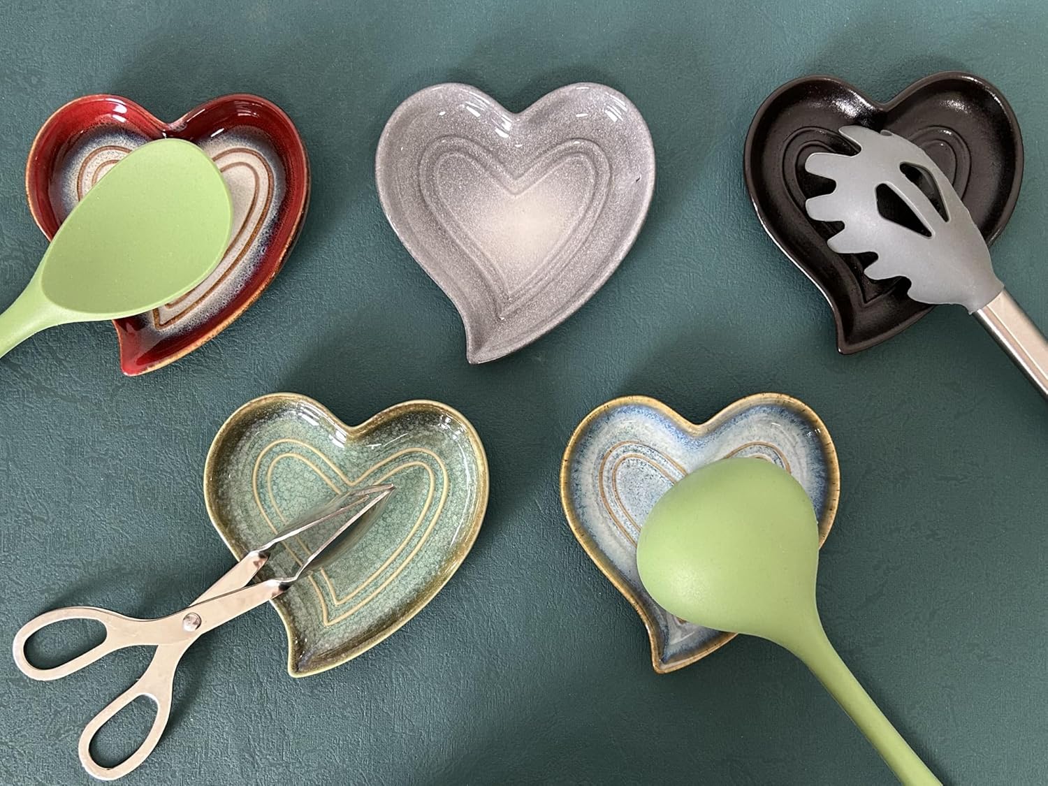 - 💕 【Designed and Decorative】: The ceramic spoon rest for stove top is heart shaped. The unique designed spoon rest cute is perfect addition and decoration to your kitchen counter, stove top, coffee bar and dinning room.