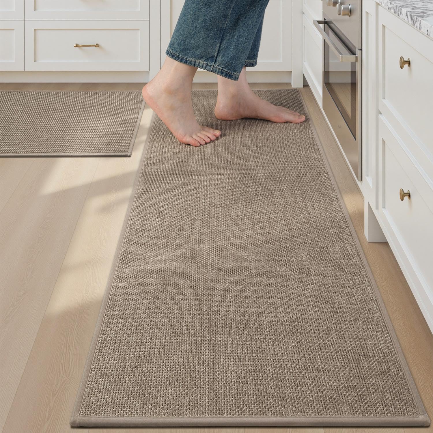 tchdio Kitchen Mats for Floor Set of 2 PCS, Rubber Backed Kitchen Rugs Non Slip Washable, Superior Absorbent Kitchen Mat Easy to Clean, Comfort Kitchen Floor Mat Front of Sink Tan 17"x29"+17"x47"