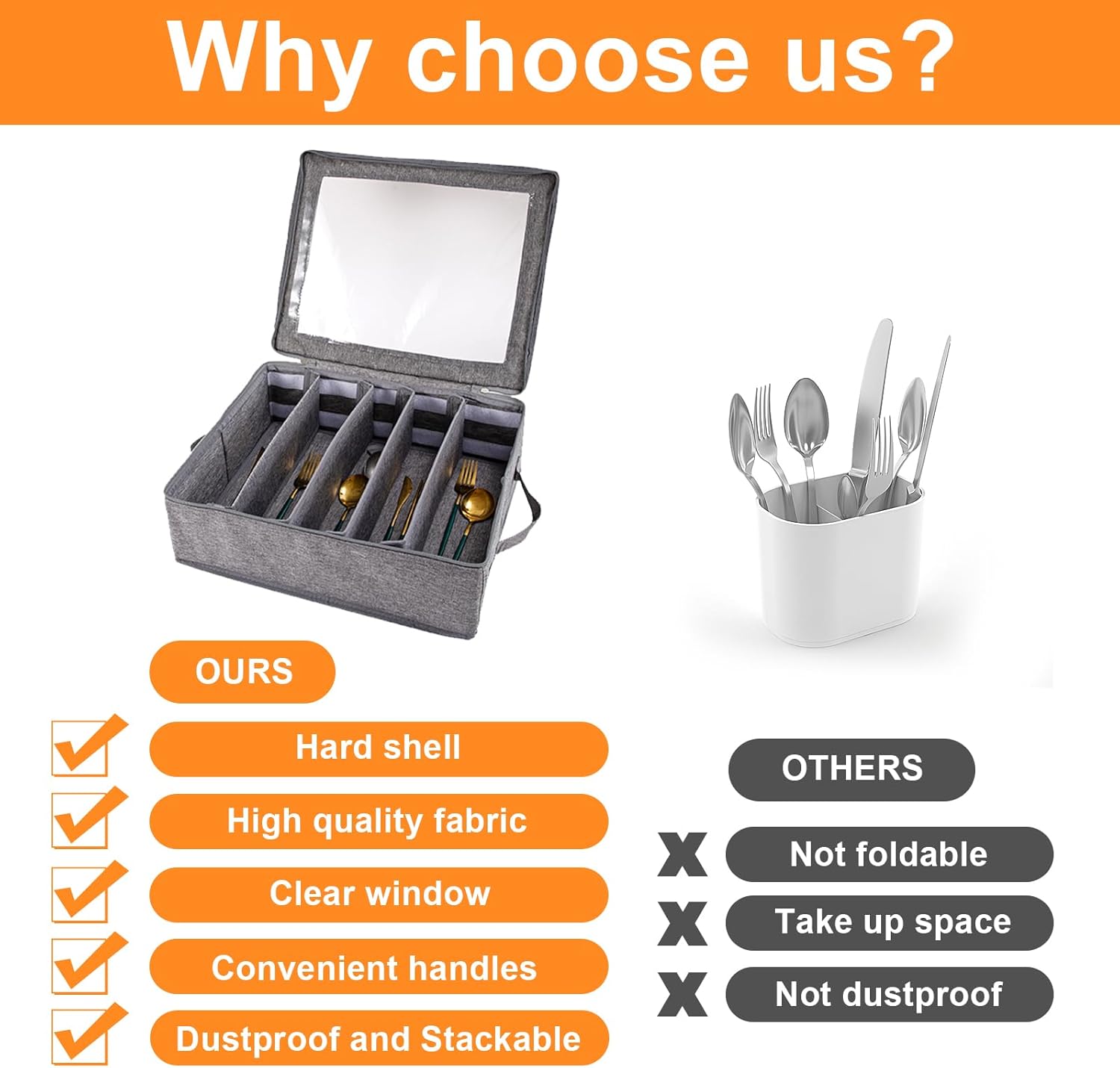 - Secure Silverware Organizer with Sealed Lid:Keep utensils dust-free and scratch-resistant with this zippered storage case. Adjustable padded dividers securely hold full place settings, while the airtight lid creates a protective barrier against humidity and tarnish during long-term storage.