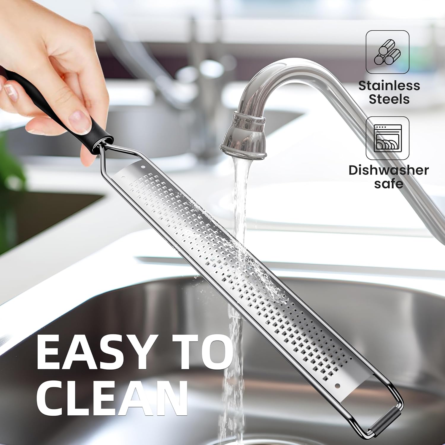 - Zester grater's stainless steel blades are sharp and wear-resistant, and can be used for chocolate, ginger, lemon citrus, cheese, and more