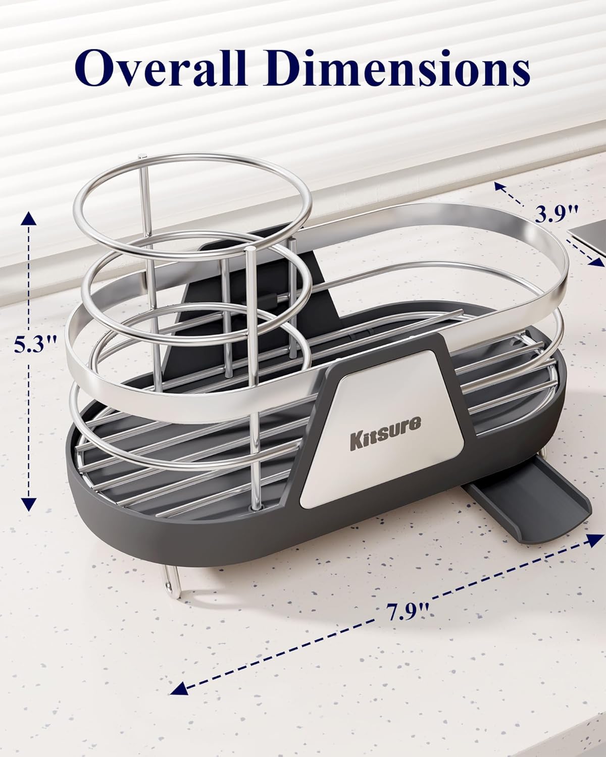Kitsure Sponge Holder for Kitchen Sink - Space-Saving Kitchen Sink Caddy, Rustproof Metal Organizer with Removable Brush Holder, 7.9"×3.9"×5.3", Grey