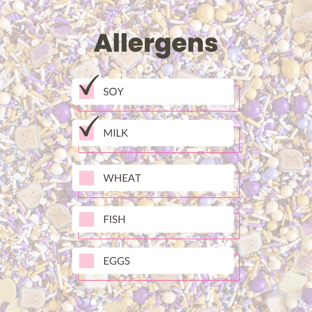 - Allergen & Safety Notice: Made in a facility that processes wheat, eggs, milk, soy, and tree nuts. Some blends contain hard sugar pearls and dragee rods, which may pose a choking hazard for children under 2