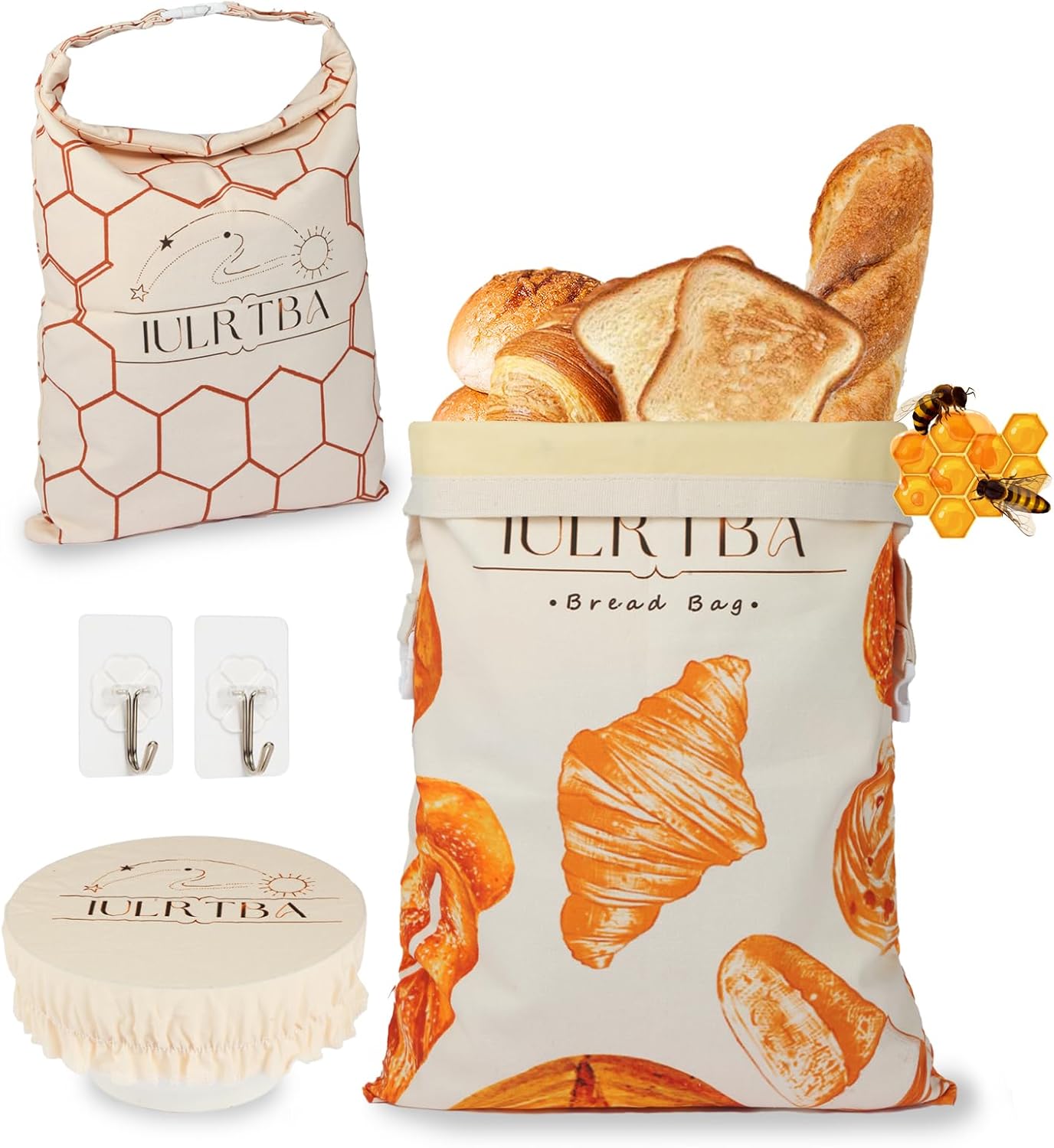 - [Organic Beeswax] IULRTBA provides the 100% food grade safe natural beeswax lined bread bag, which helps regulate moisture perfectly, store the bread at a proper humidity level, keep the crust crisp and the inside soft. It allows your bread to stay fresher and longer, in room temperature (68-77°F) for 3 days, in refrigerator (39-44°F) for 7 days, in freezer (-0.4°F) for 3 months