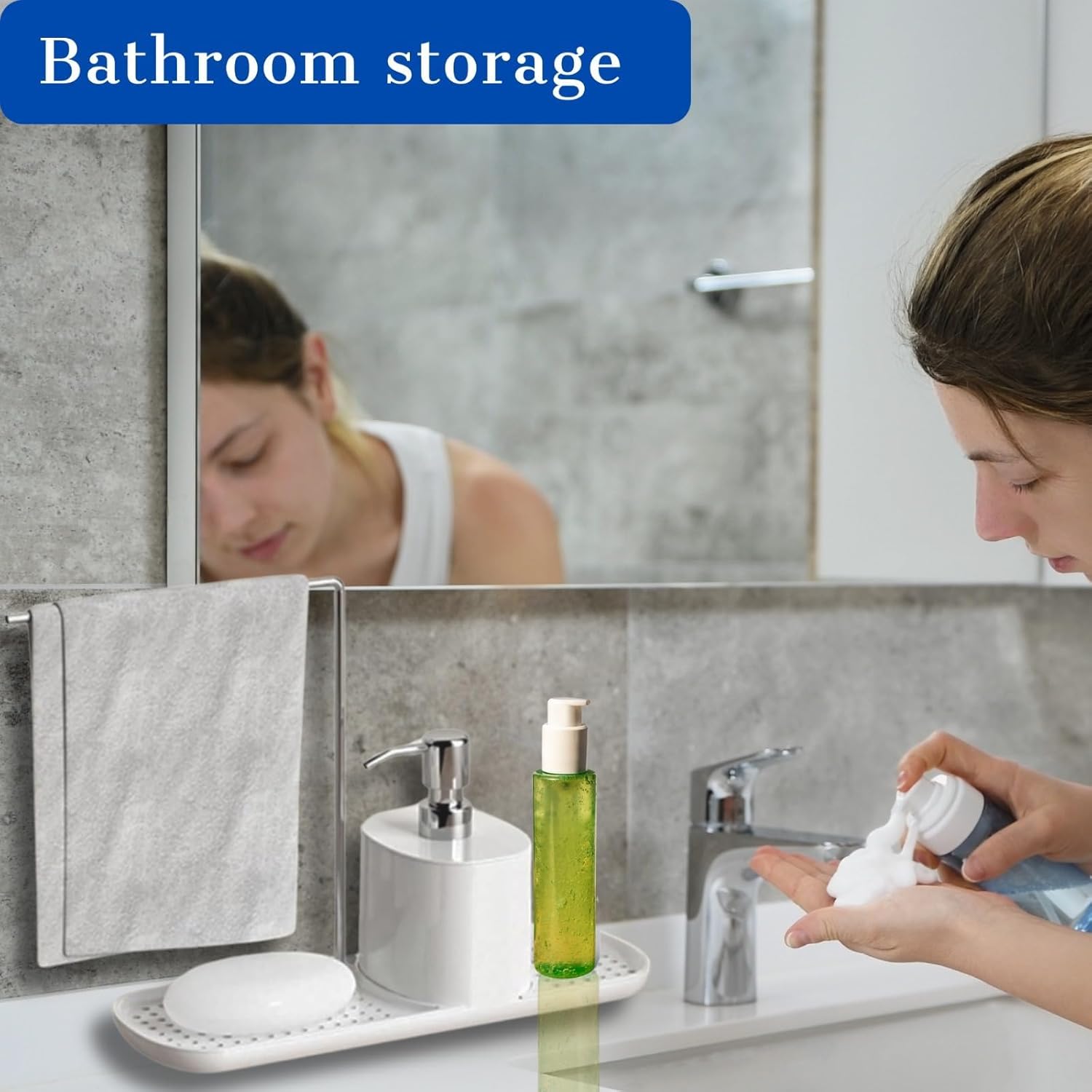 - Trail and Space】This kitchen sink caddy comes with a long sturdy rail, that swivels in three directions so that the water in the cloth can be directed to the sink . There won't be any water left on the countertop, you don't need to clean often Resistant to rust, corrosion, and wear, making them ideal for high-traffic areas. In summary, a "sturdy rail soap dispenser" is a durable, heavy-duty liquid soap dispenser that is designed to be attached to a rail system. This configuration is valued for its stability, space-saving qualities, and the flexibility to rearrange or replace components as needed.