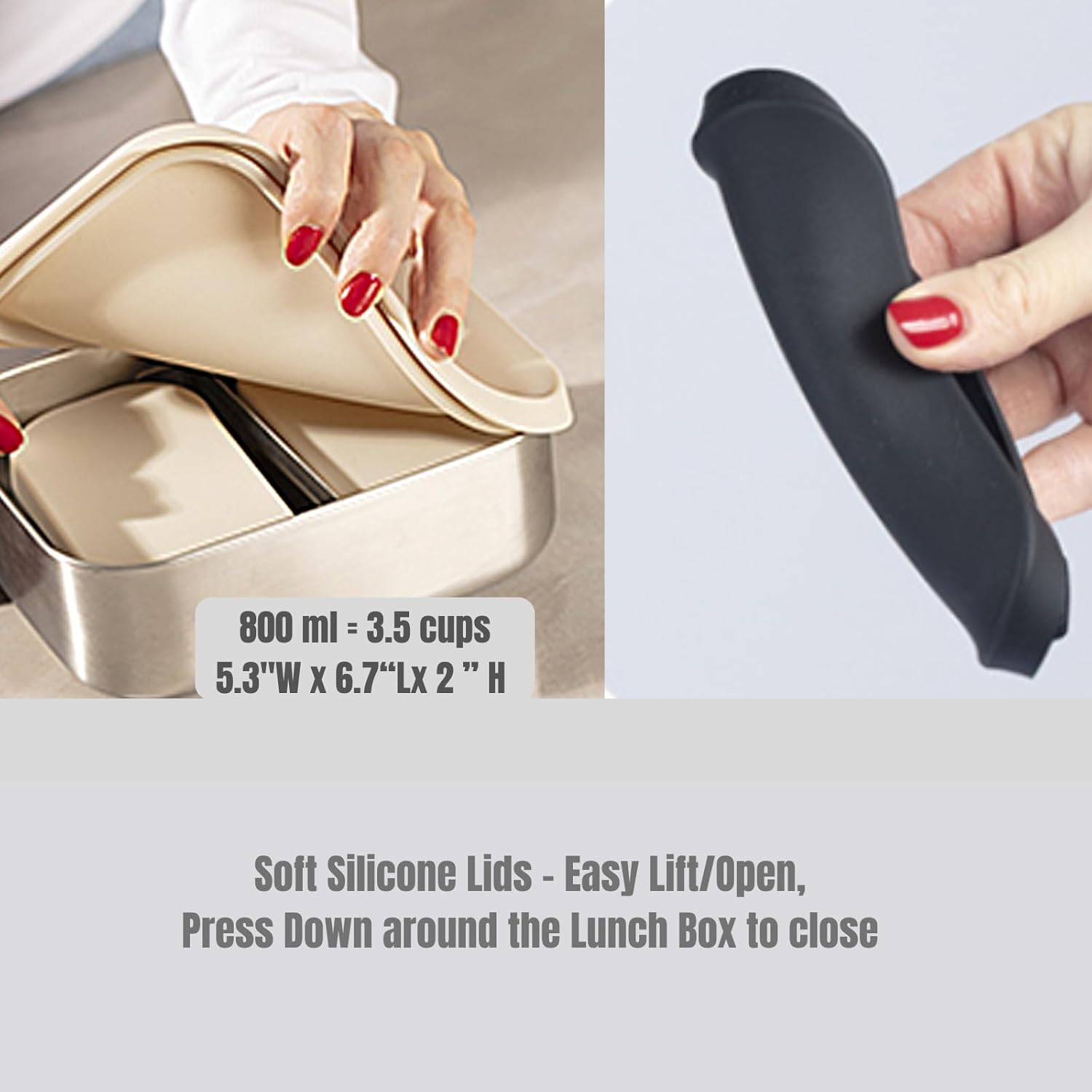 - FITS EVERY NEED -PICNICS, COLLEGE, OFFICE, WORLK, OUTDOOR - Perfect flexibility and serve as Stainless Steel Lunch Snack Containers | Leak Proof Stainless Steel Food Containers with Silicone Lids - Perfect Metal Food Containers with Lids . This Stainless steel bento box is designed in simple contours/ elegant colors for ages 12+