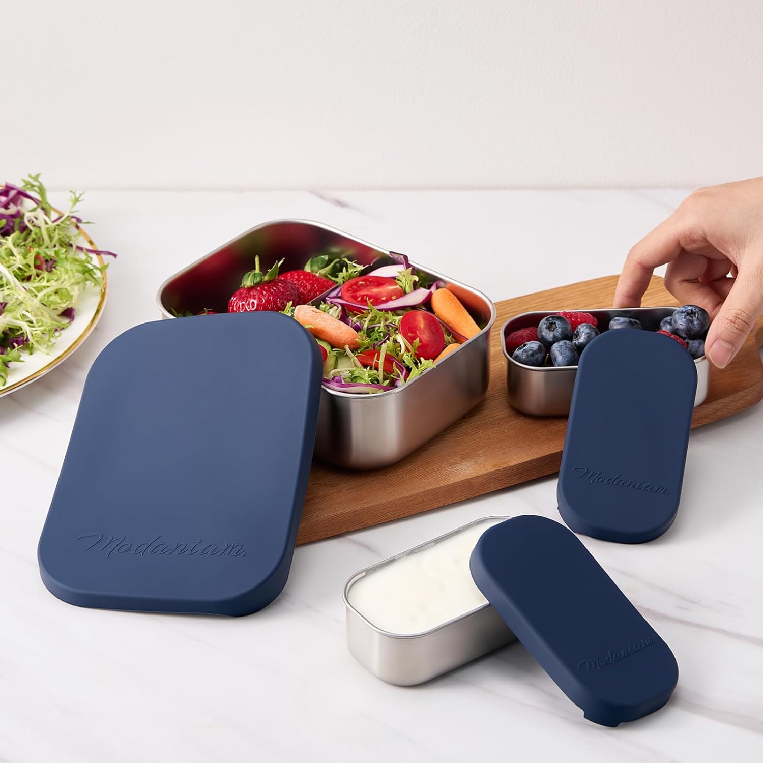 - FLEXIBLE MIX AND MATCH MEAL SOLUTION - This set is a part of Modaniam FlexiBento meal solution and can be mixed and matched with other products in this collection to make flexible meal solutions. This Lunchbox /Bentobox set is made of premium quality stainless steel (Plastic free). You can use these as snack containers , sandwich containers , Lunchbox, Bentobox. The varying sizes lets you make complete snacks and meals keeping flavors of each intact.