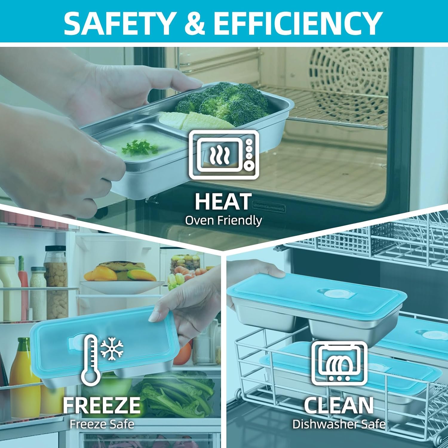 - EASY TO CLEAN: Stainless steel containers reusable with lids support dishwasher cleaning, which is simple and effortless to clean leak proof and fresh,easy to carry, clean and environmentally friendly,ensuring delicious food is not spilled.