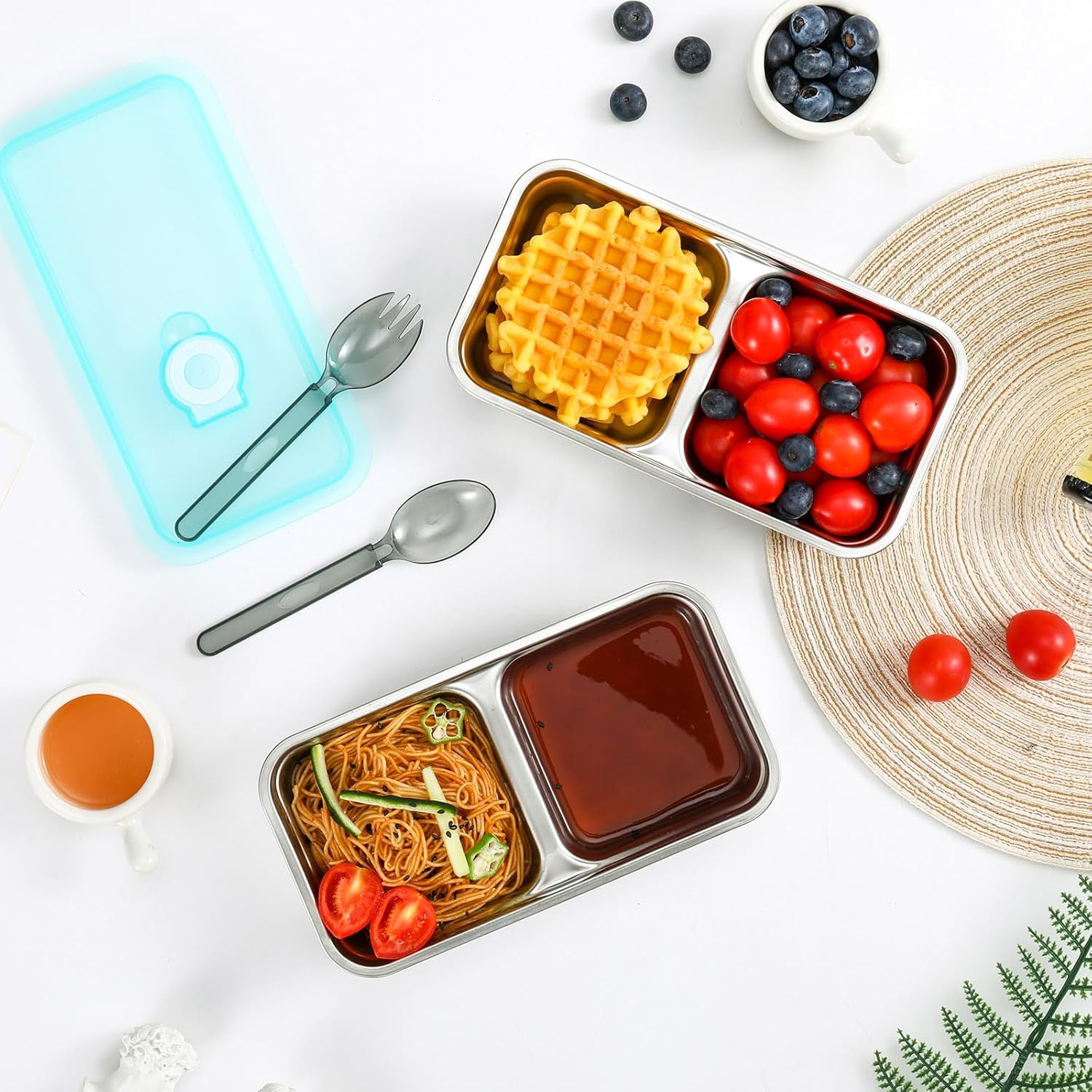 - HIGH-QUALITY MATERIAL: Stainless steel snack boxes feature a double-compartment design, leak-proof seal that keeps lightweight,compact,and versatile, the stainless steel lunchbox won’t release harmful chemicals, ensuring food safety.