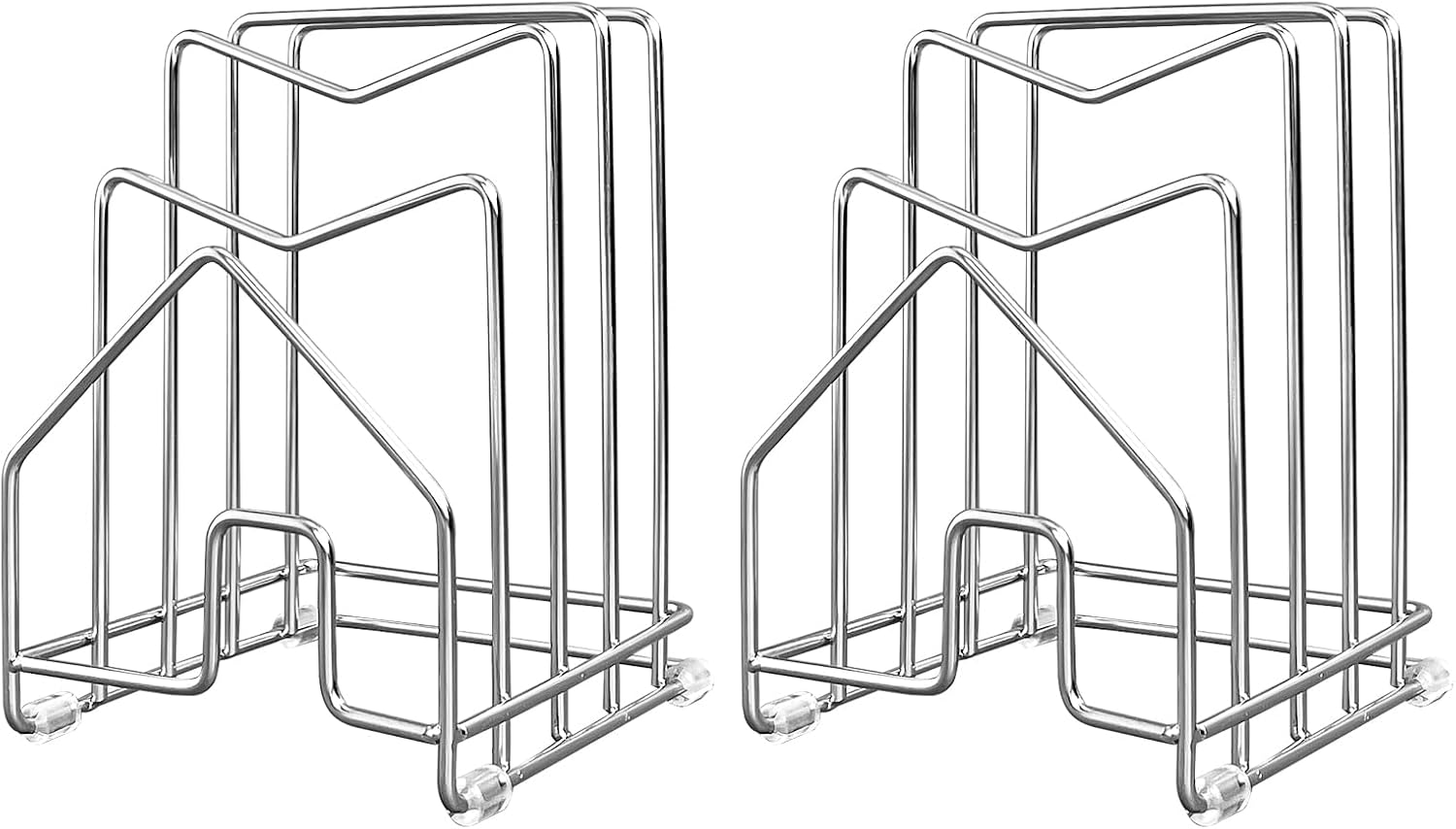 2 Pack Pot Lid Organizer Cutting Board Holder Inside Cabinet 304 Stainless Steel Pots and Pan Organizer Under Cabinet Pot Cover Cookie Sheet Bakeware Serving Tray Cooling Rack Stand Kitchen Countertop